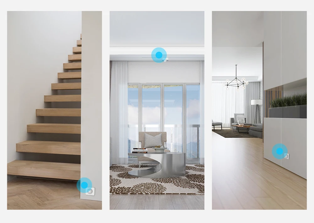 Подключите камеру к датчику движения и поместите датчик практически в любом месте дома, затем вы можете просмотреть, что происходит в вашем доме через камеру на странице датчика приложения.