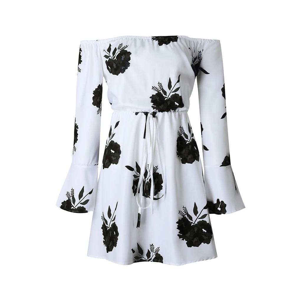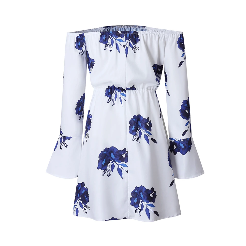 Женское сексуальное мини-платье с открытыми плечами, длинным рукавом и цветочным принтом, вечерние платья