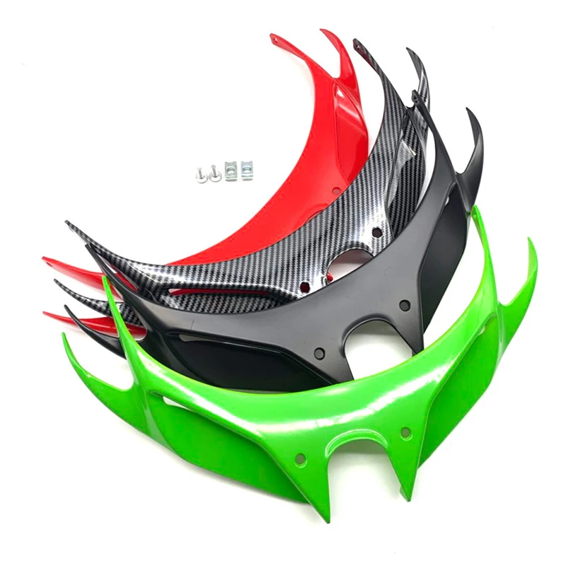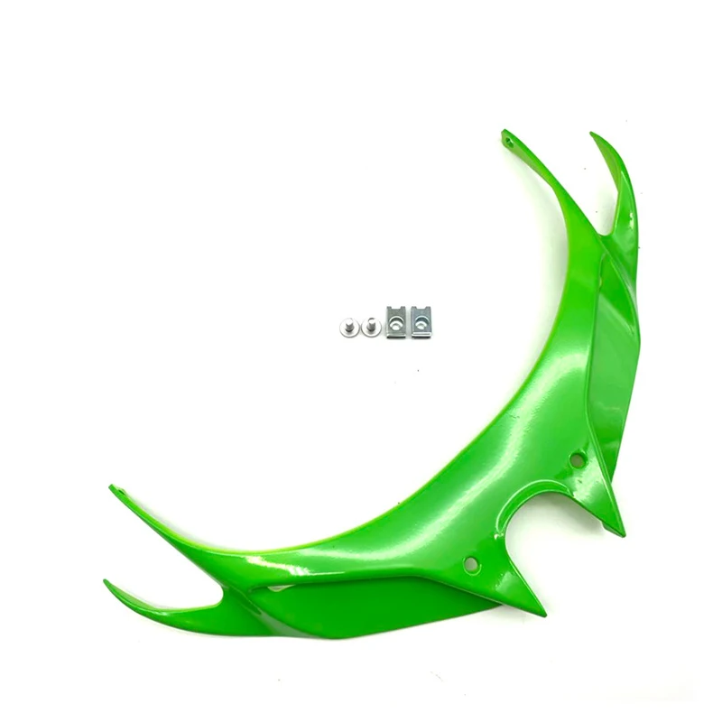 Описание Состояние: 100% новый бренд Материал: высококачественный АБС-пластик Цвет: черный, зеленый, красный, оранжевый Характеристика -Простой дизайн, легко установить без инструкций -Прочный и удобный -Высокая термостойкость Посылка 1 комплект передних обтекателей аэродинамических крыльев Фитинг Для Kawasaki Ninja 400 2018 2019