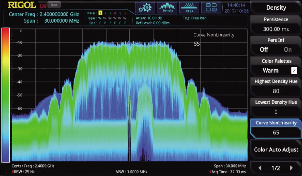 Благодаря спектру плотности вы можете найти исключительные сигналы, скрытые за сигналами высокого уровня, и точно запечатлеть их с помощью FMT.