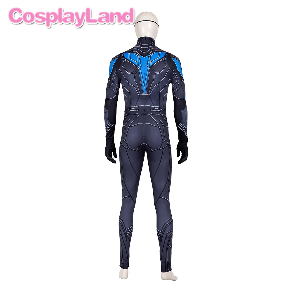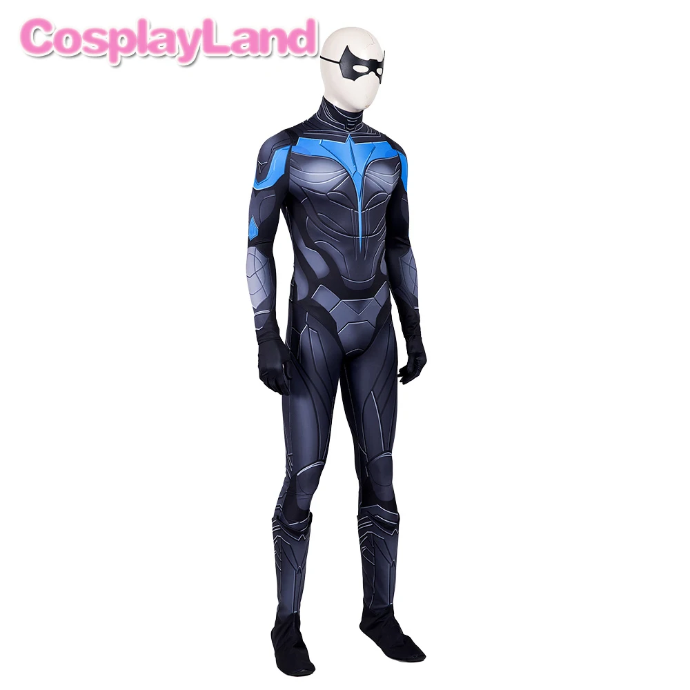 Titans костюм Nightwing наряд 3D комбинезон с принтом Диком Грейсоном костюм эластичный боди с сапоги маска для глаз для взрослых мужской костюм