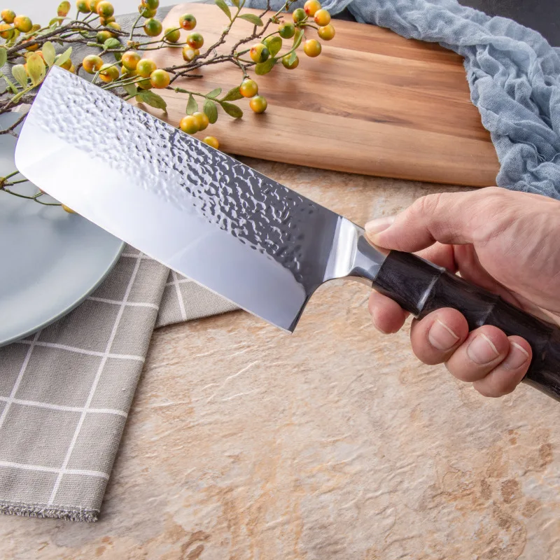 Многофункциональный китайский нож Профессиональный Китайский слайсер, который может обрабатывать ваши ежедневные кухонные задачи, чтобы нарезать, нарезать, нарезать и нарезать фрукты, овощи и мясо. Это универсальный кухонный нож для любого домашнего или профессионального шеф-повара Острый край Лезвие изготовлено из нержавеющей стали 5CR15MOV, высокая твердость по роквеллу, ручные отполированные края, 15 градусов на одну сторону. Тщательно спроектированные конические кромки из нержавеющей стали для легкой и эффективной резки. Матовый дизайн лезвия, который анти-Пищевая прилипает к лезвию. Зеркальное лезвие, острый и прочный, сохраняет хорошую яркость Цветная деревянная ручка Тщательно подобранная древесина, здоровая и экологически чистая. Эргономичная ручка, Полная прочность и идеальный баланс для прочности и полного контроля