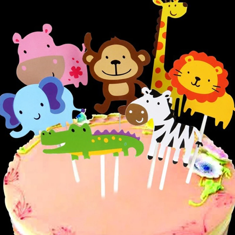 Дикие джунгли животных Тема кекс украшения, мило и мило.