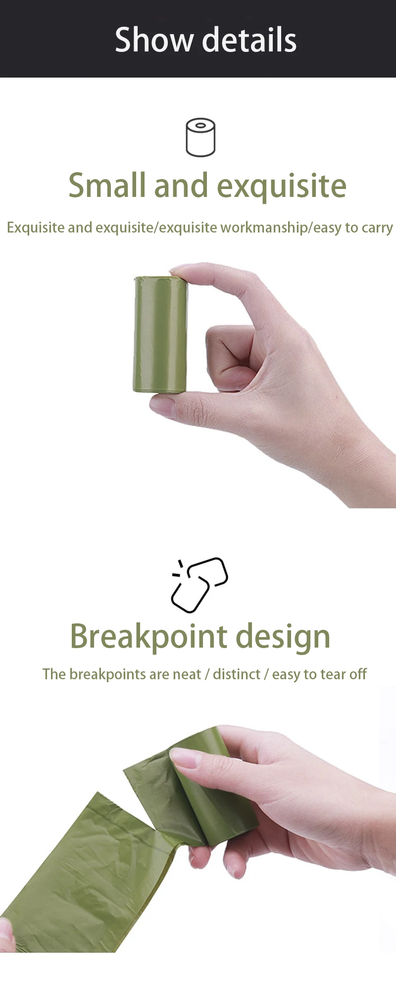 Мешок для сбора отходов домашних животных мешок для мусора Количество: 15 шт/рулон Комбинация: 1 рулон/2 рулона Описание количества: описание количества: один рулон можно разделить на 15 небольших пластиковых пакетов, я надеюсь, что мои дорогие покупатели не поймут неправильно Материал: пластик