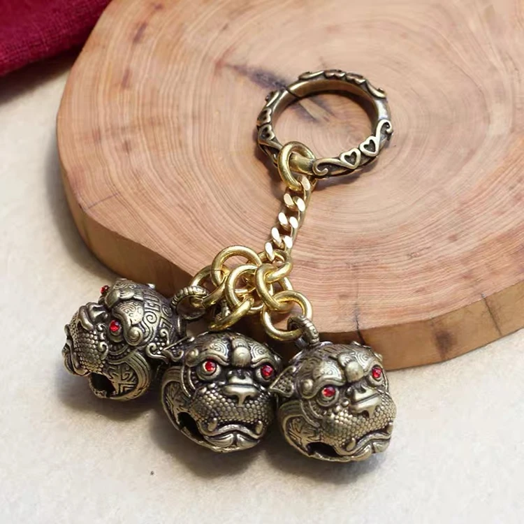 Латунная ручная работа, литье под давлением, тигровый колокольчик, Автомобильный ключ, ветровой колокольчик, тибетская бронзовая колокольчик, креативные автомобильные аксессуары Ключи Подвеска, подарки