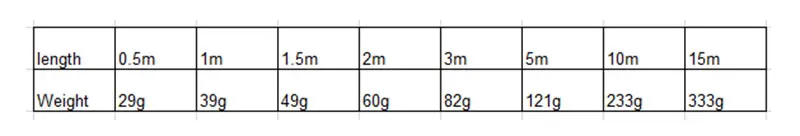 Length:0.5M 1M 1.5M 2M 3M 5M 10M 15M