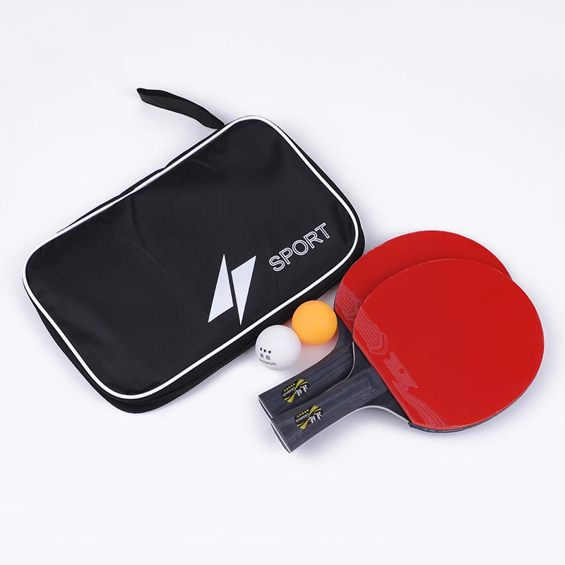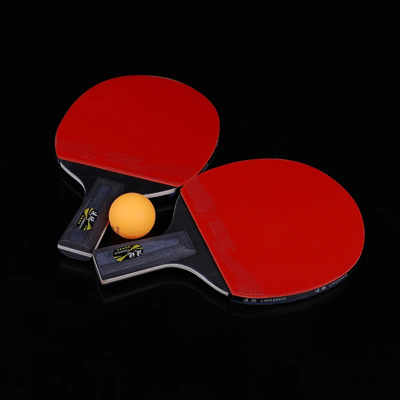 2 шт./лот, настольная ракетка для тенниса, ракетка с шариком, 5 звезд, длинная ручка, резиновый красный и черный двусторонний ремень