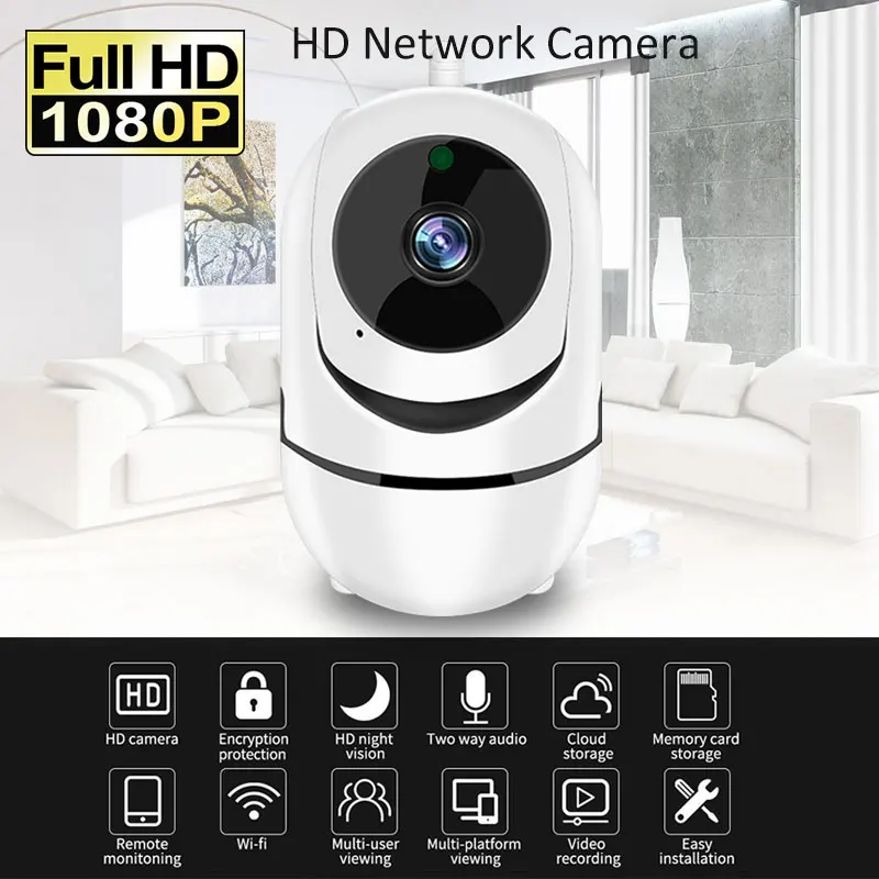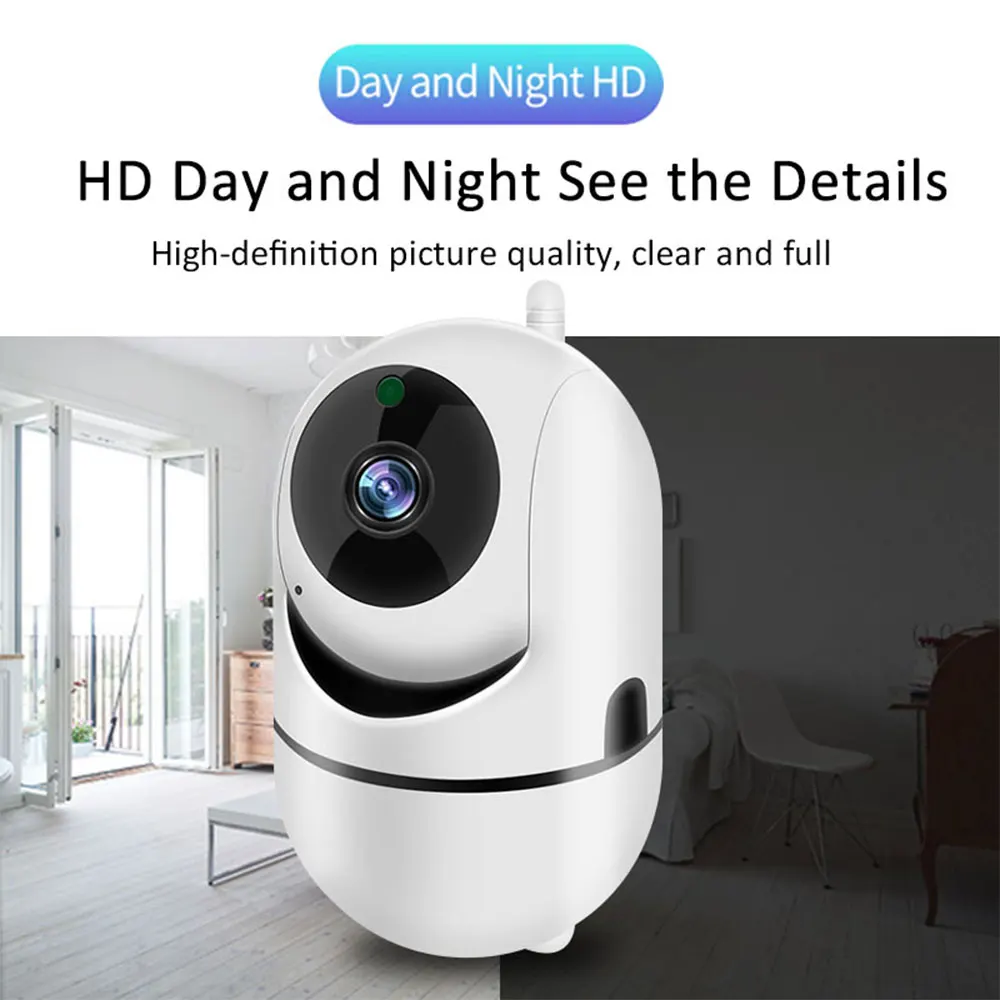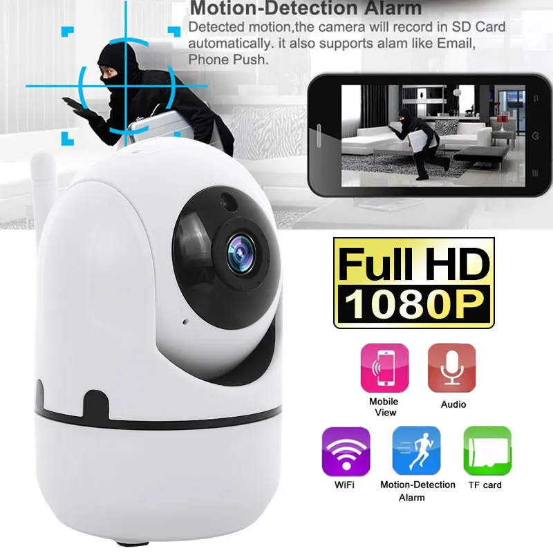 1080P высокой четкости, с 355 градусов по горизонтали и 80 градусов по вертикали. 360 градусов панорамный вид, контролировать ваш дом без слепой зоны. С Вертикальным/горизонтальным объективом PTZ, вы можете дистанционно управлять, чтобы смотреть везде в вашем доме. Smart mobile tracking-tech отправит вам оповещение, если какой-либо подозрительный Инвазивный объект. Камера автоматически отслеживает и отправляет 5 секунд оповещения на ваш телефон.