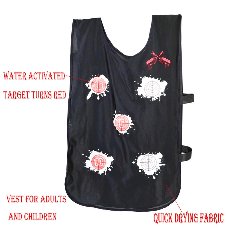 2.Регулируемые жилеты-Жилеты с водными мишенями регулируются с 3 различными настройками размеров, обязательно подходят для любого возраста 8 +.