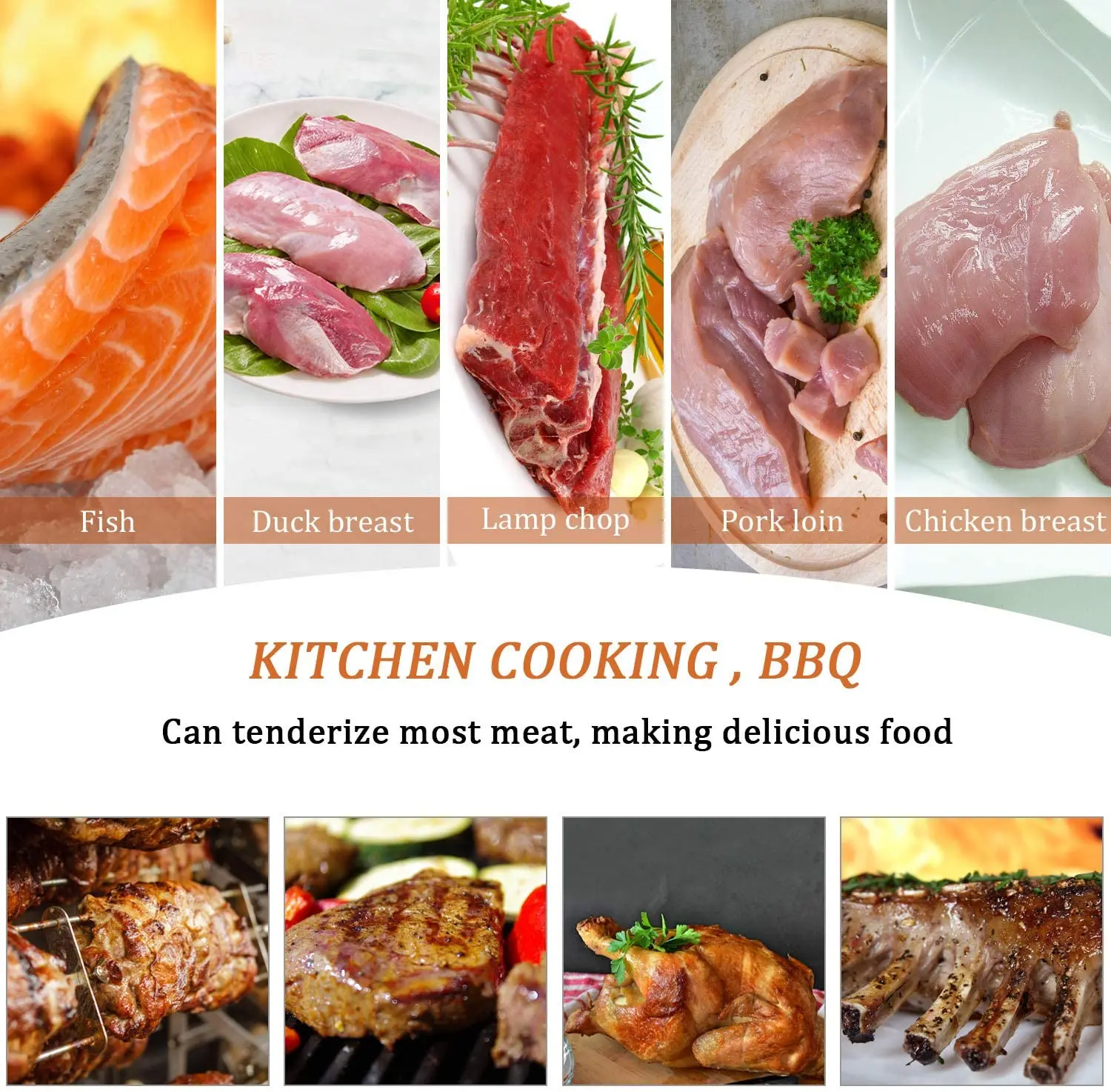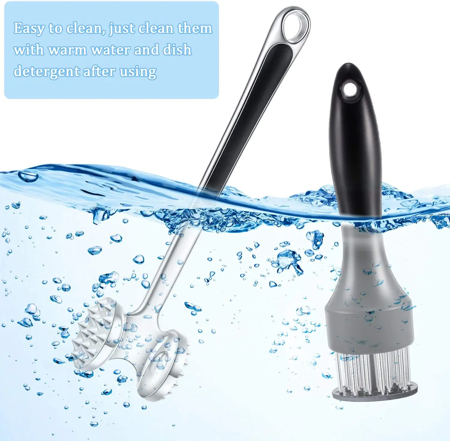 Игла и молоток для мяса можно наносить непосредственно на различные мясо, такие как свинина, говядина, телятина, после использования просто очистить их теплой водой и моющим средством, поставляется с 2 кусочками силиконовых кистей, делает чистку проще и удобнее.