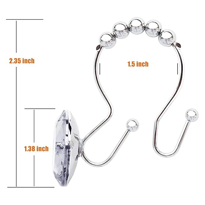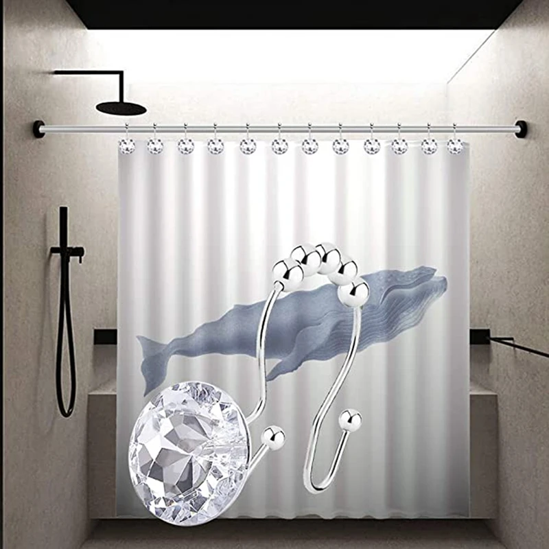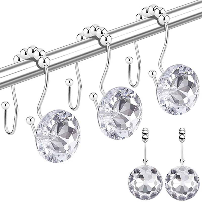Горячие 12 шт душ шторы крючки кольца для ванной комнаты, двойные крючки Glide Антикоррозийные хрустальные стразы крючки стержни занавески