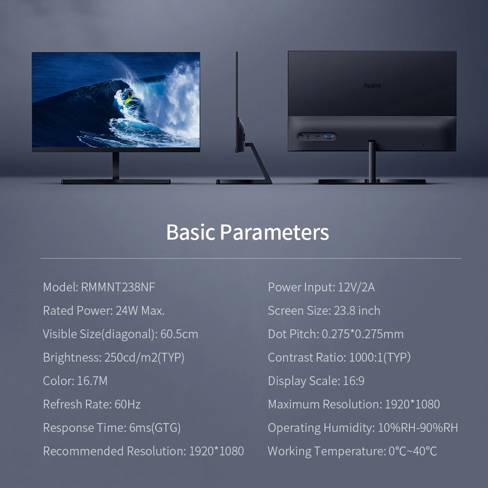 23,8 дюймовый монитор с разрешением 1920*1080P обеспечивает высокое качество изображения и естественный цвет, вы можете точно понять каждую тонкую деталь в видении.