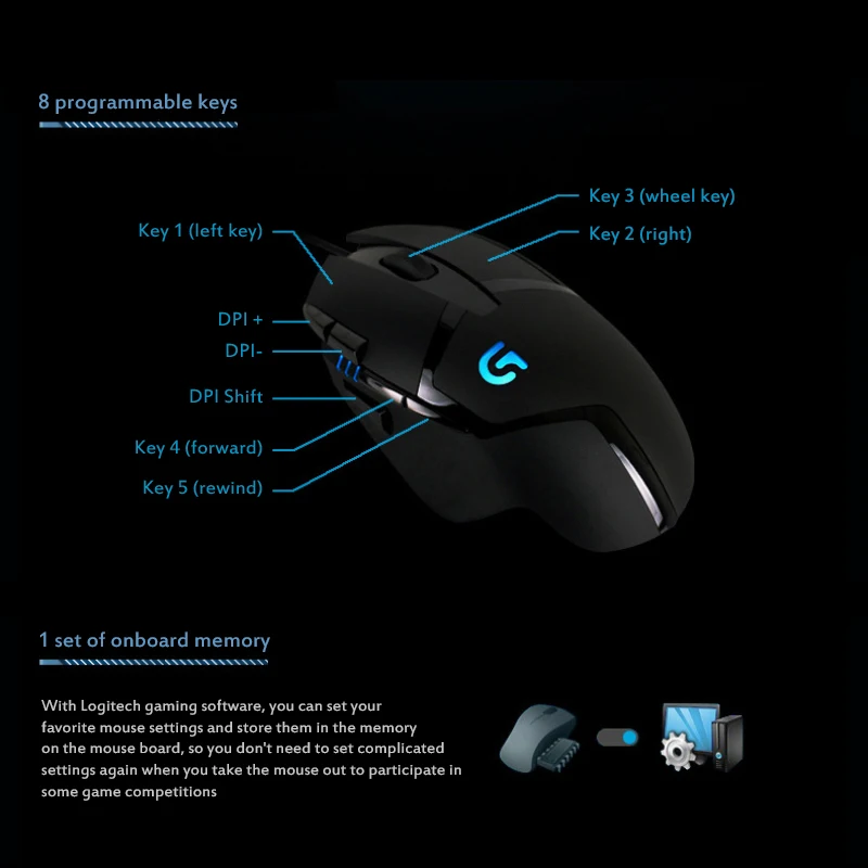 Оригинальная игровая мышь G402 Hyperion Fury, оптическая высокоскоростная 4000DPI