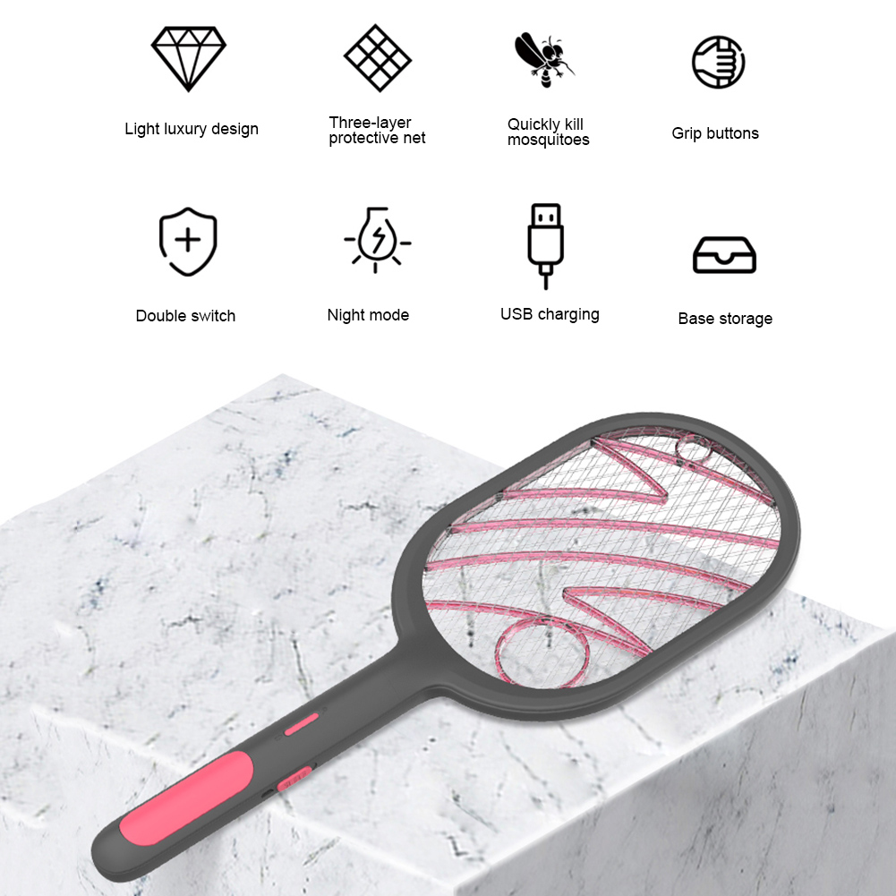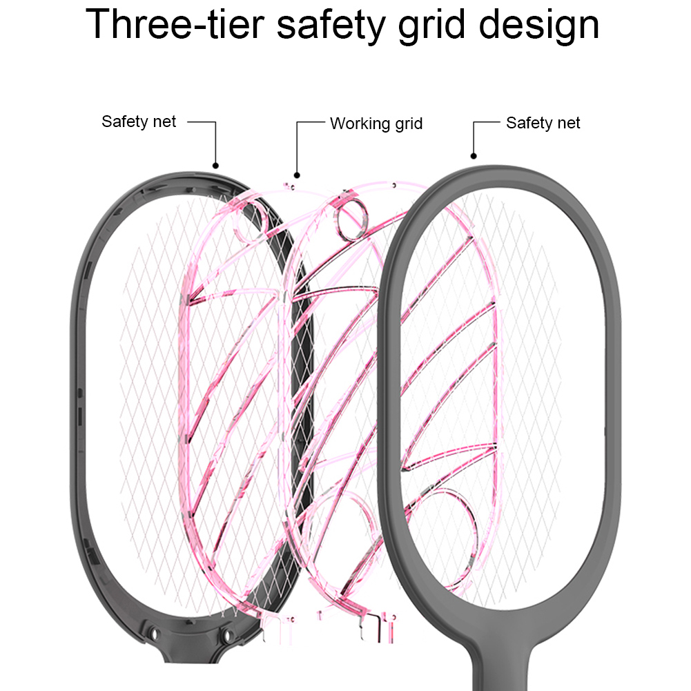 -Есть два слоя изоляционных защитных сетей на передней и задней стороне, без тока для предотвращения электрического удара. Тонкая Сетка среднего уровня имеет безопасное напряжение низкого тока, которое находится в безопасном диапазоне для людей и сильное напряжение для комаров и мух.