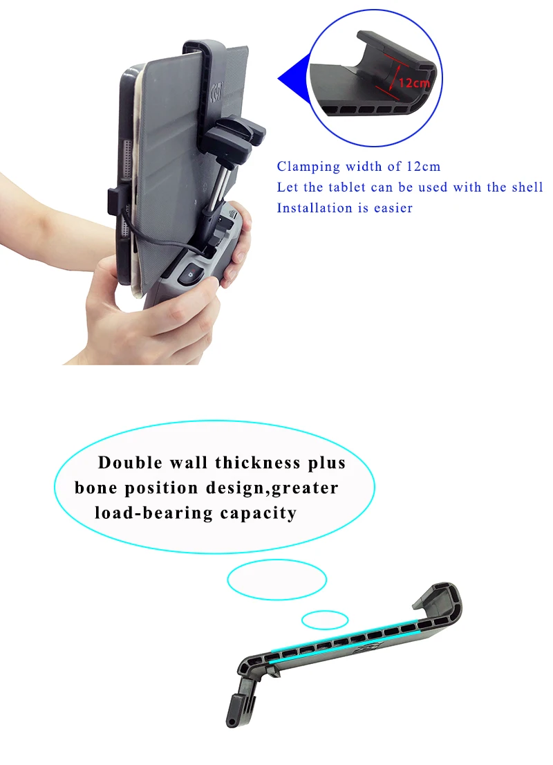 Ширина зажима 12 см, так что планшет может быть использован с оболочкой, установка более Беззаботная.