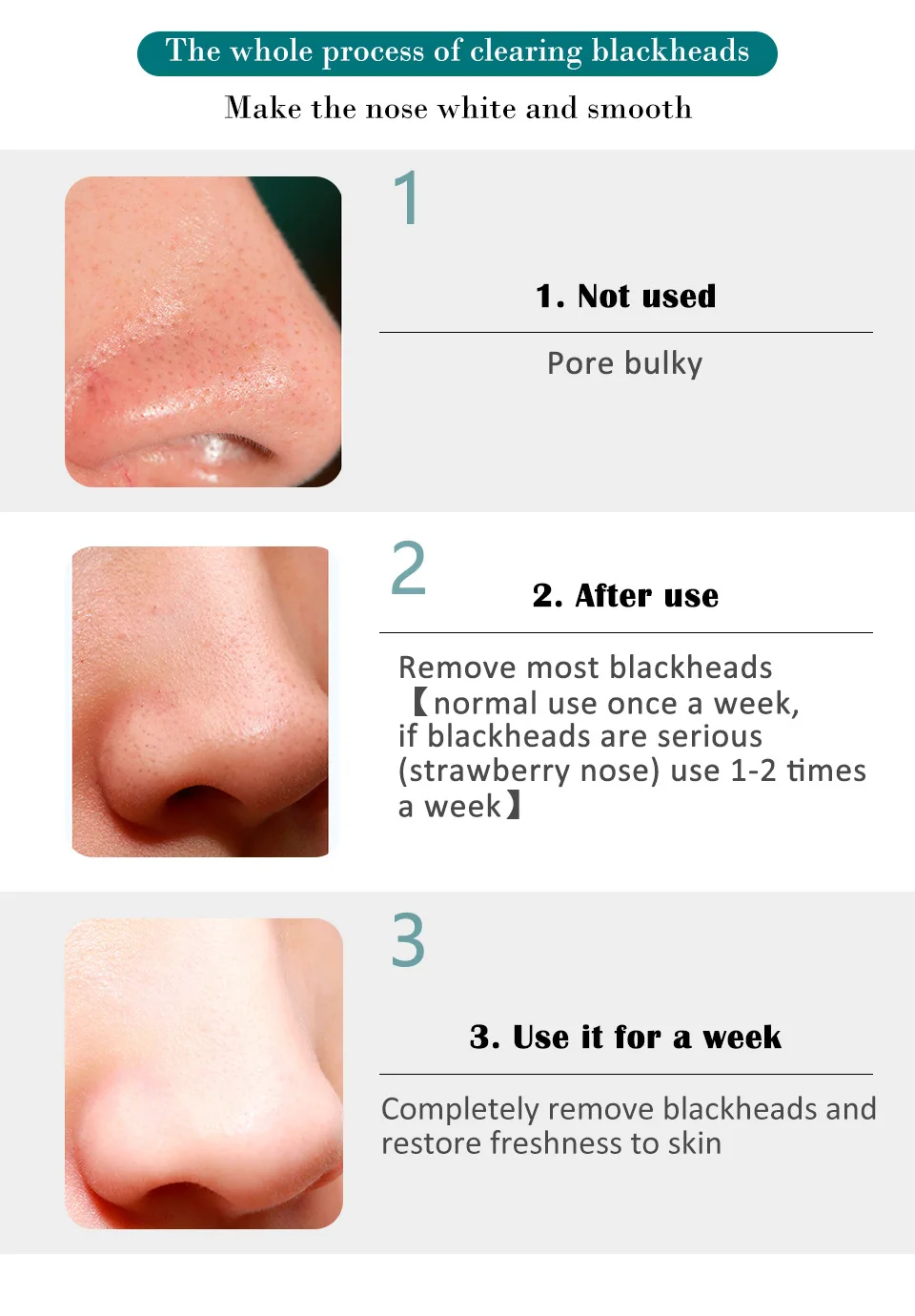 Сделайте нос белым и гладким 1. Не используется Громоздкие поры 2. После использования Удалите большинство черных точек; Нормальное использование один раз в неделю, если черные головки серьезные, используйте 1-2 раза в неделю. 3. Используйте его в течение недели Полностью удаляет черные точки и восстанавливает свежесть кожи.