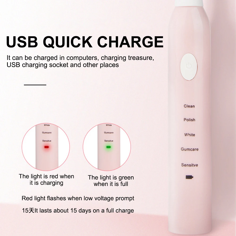 5 modes adjustable: white, clean, polish, gumcare and sensitive for different needs.