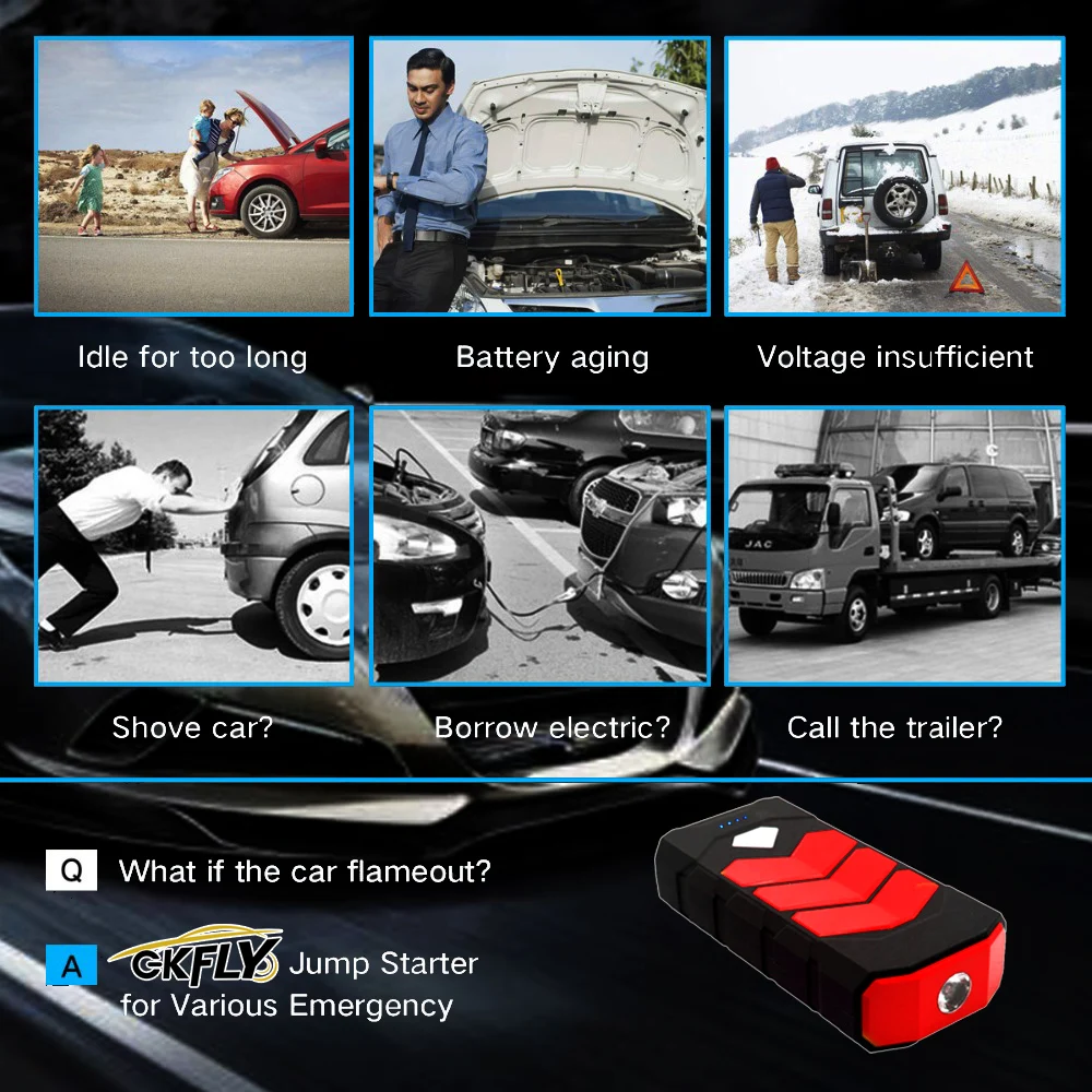 GKFLY стартер для автомобиля портативная зарядная станция 12 В Jumper пусковое устройство Зарядное устройство Аккумулятор Booster аварийный Jumpstart Kit
