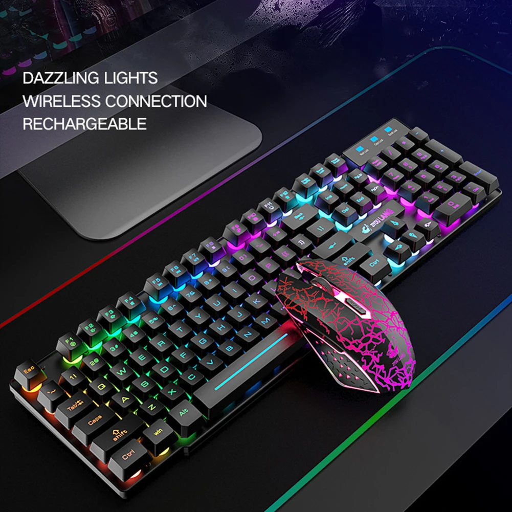 T3 беспроводной Перезаряжаемый красочный светильник, игровая клавиатура, мышь, набор для ноутбуков