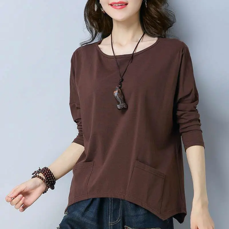 Женская блузка размера плюс из 100% хлопка с длинным рукавом