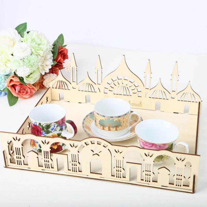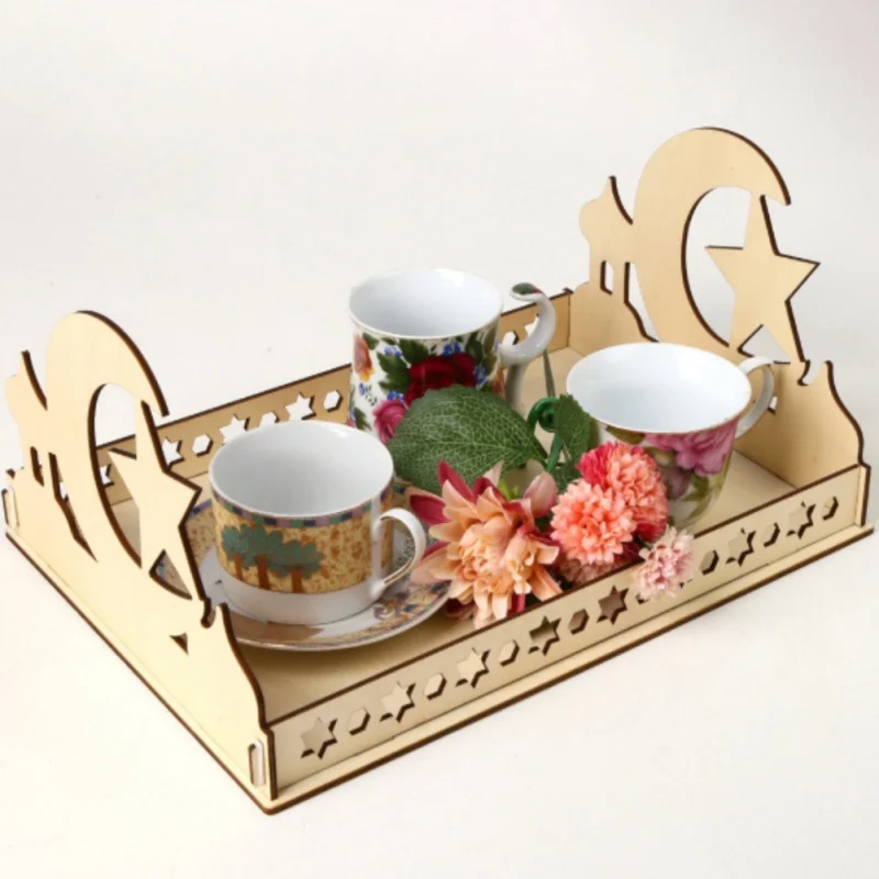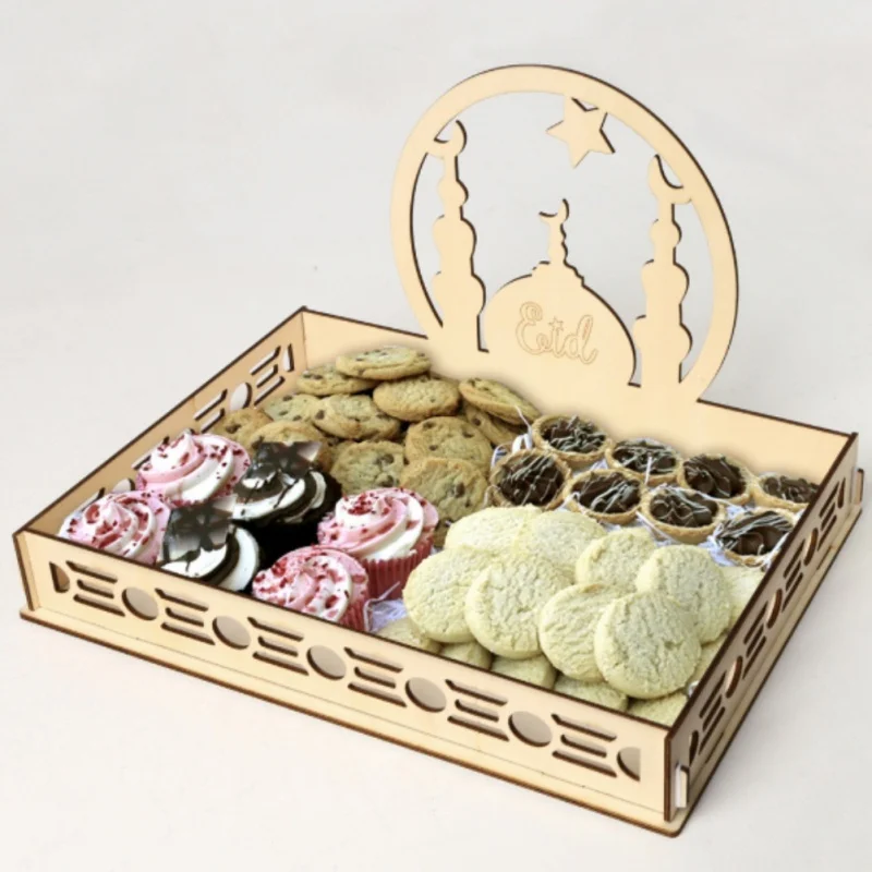 1. Деревянный поднос для продуктов, чтобы отпраздновать Eid Mubarak, очень подходит для Eid Mubarak, вечерние или любые другие мероприятия;