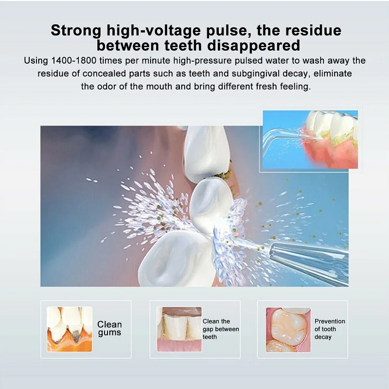 [Высокочастотная пульсация с низким уровнем шума] с низким уровнем шума 65 дБ и 1300/мин пульсация воды, наиболее удобная частота согласно исследованию, легче удалять остатки пищи между зубами и массировать десну. Специально разработанный для пародонтита, Он признан профессиональными стоматологами, что водный Флоссер может эффективно обрабатывать и улучшать пародонтит. Улучшенная очистка вокруг брекетов-до 3х эффективен для удаления налета вокруг брекетов, как струйная нить.
