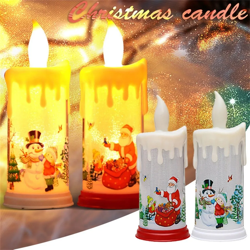 Светодиодные свечи с изображением снеговика и Санта ночной Светильник рождественскую атмосферу светильник украшения