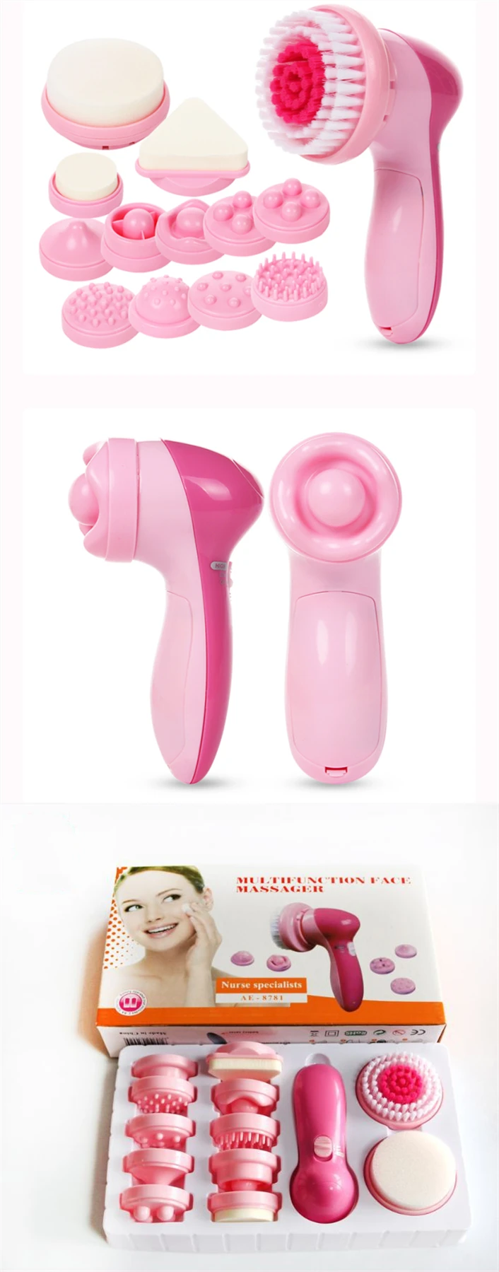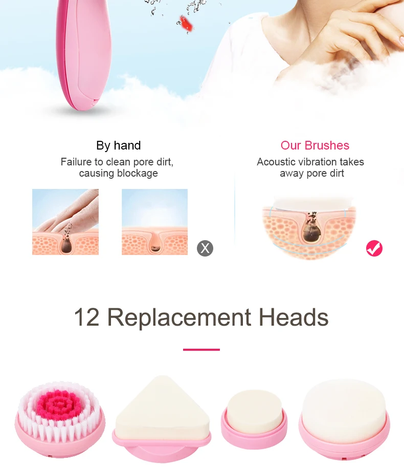1. Эти 12 в 1 наборы предлагают различные варианты, чтобы удовлетворить все ваши потребности кожи. Губчатая головка, одна для удаления макияжа, а другая для массажа глаз и щек.