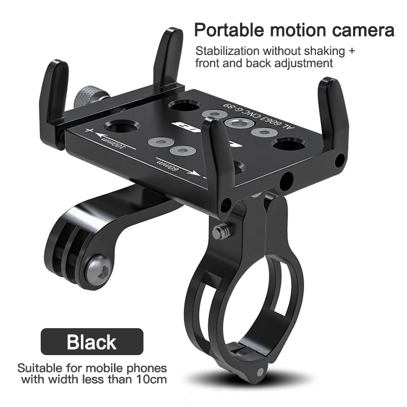 Specifications: Application: bicycle/electric car/motorcycle/scooter, etc. Material: aluminum alloy Specifications: Support 60-100mm wide equipment Weight: about 125 grams (single phone holder) Features: All aluminum alloy frame body, dual adjustment, support front and rear angle and plane 360 degree adjustment, support vertical fixation of mobile phone holder