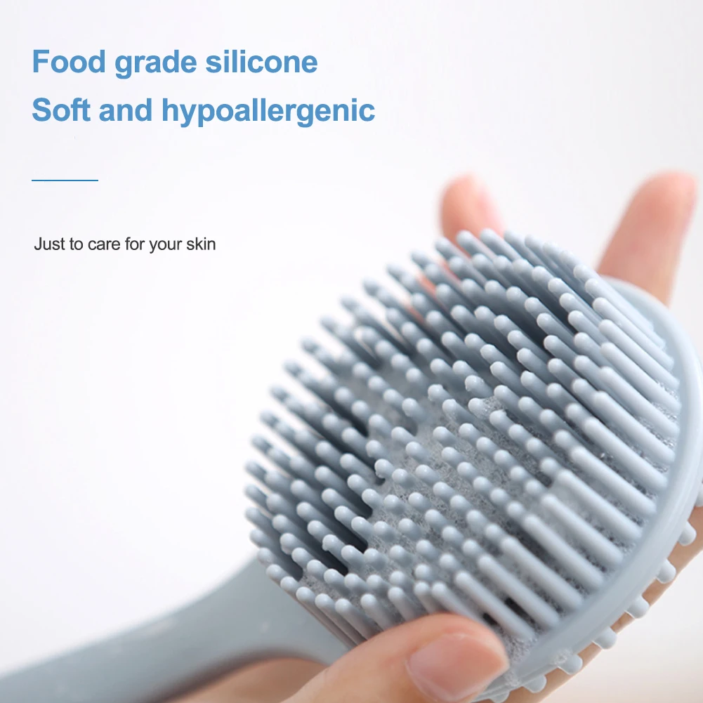 Многофункциональная силиконовая Двусторонняя купальная щетка с длинной ручкой