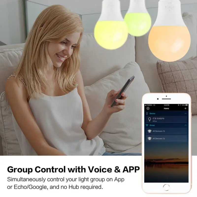 Простота установки: не требуется концентратор, нет необходимости покупать сложный дорогой мост, встроенный Wifi позволяет вам наслаждаться умной жизнью после того, как вы загрузили приложение и установили лампу.