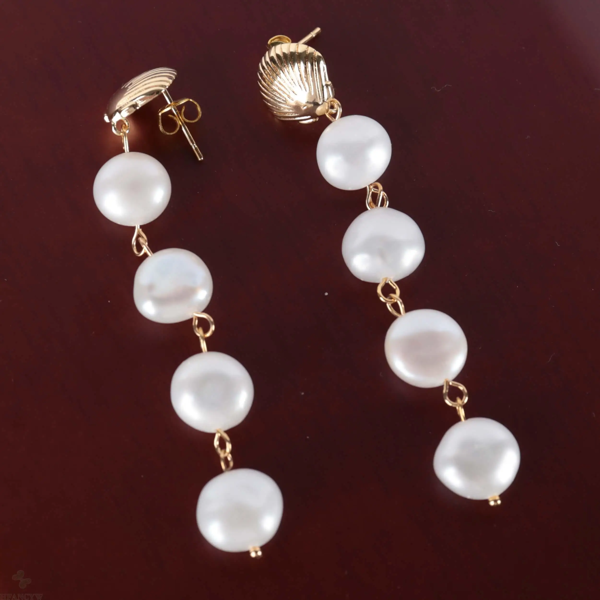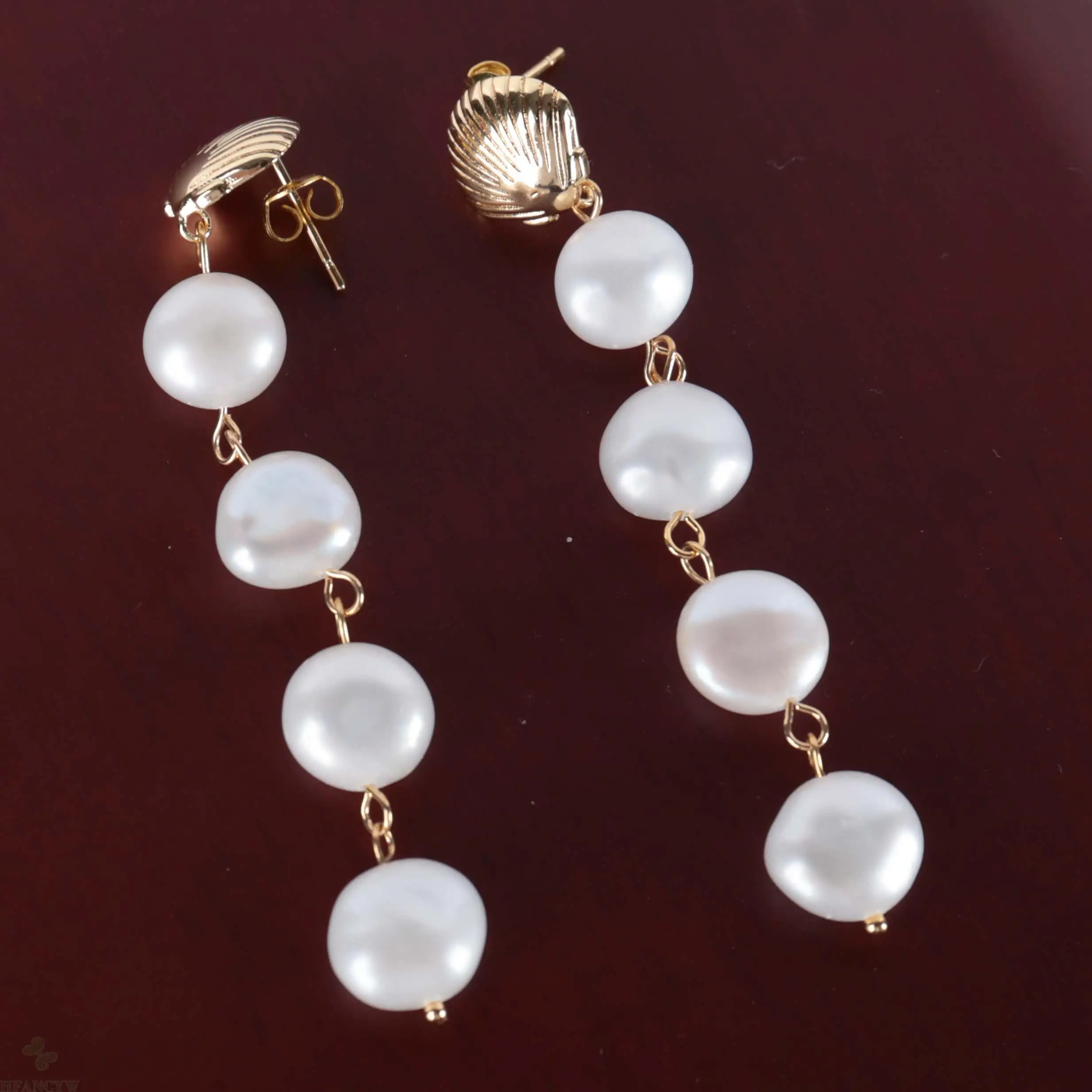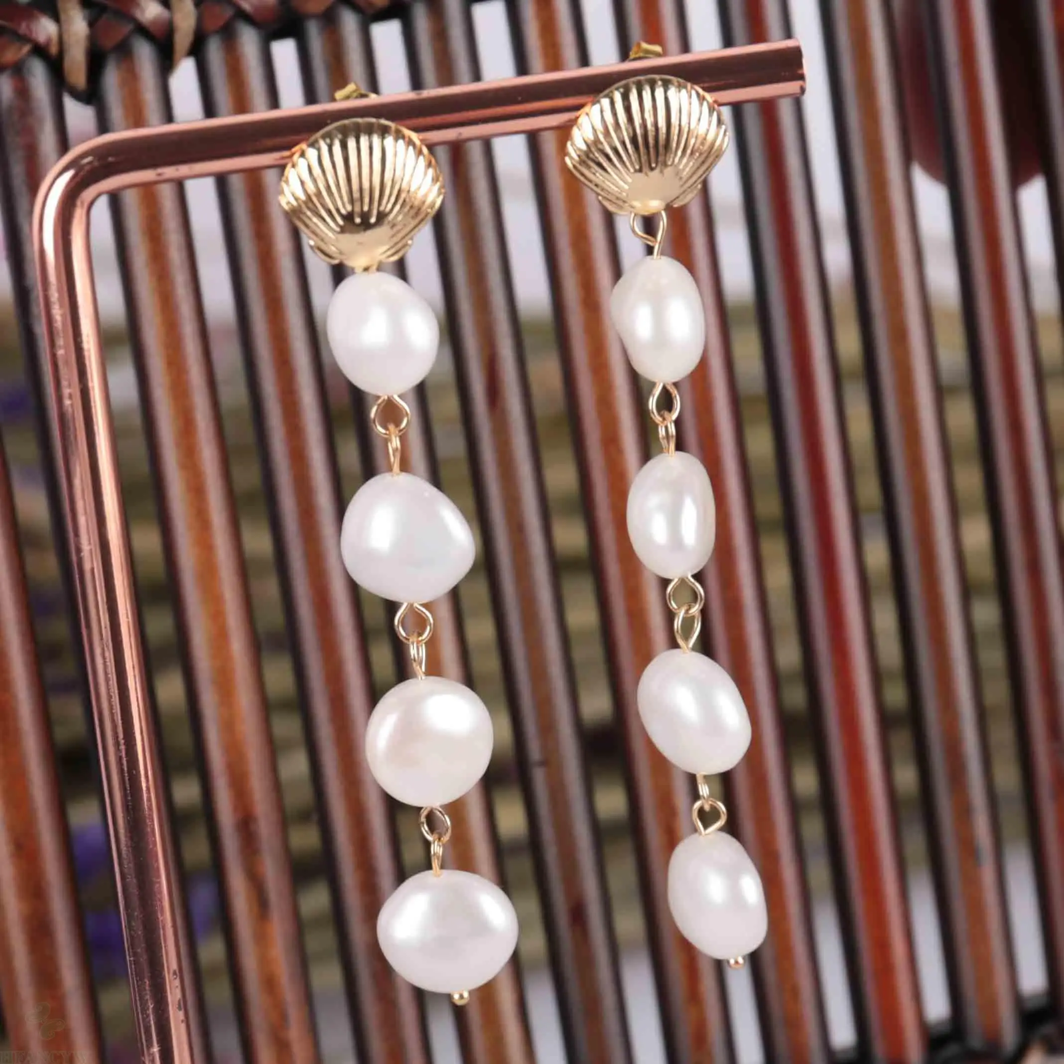 Серьги с натуральным белым жемчугом в стиле барокко, 18 К, серьги-капли в подарок, классические модные свадебные Висячие женские аксессуары для вечевечерние