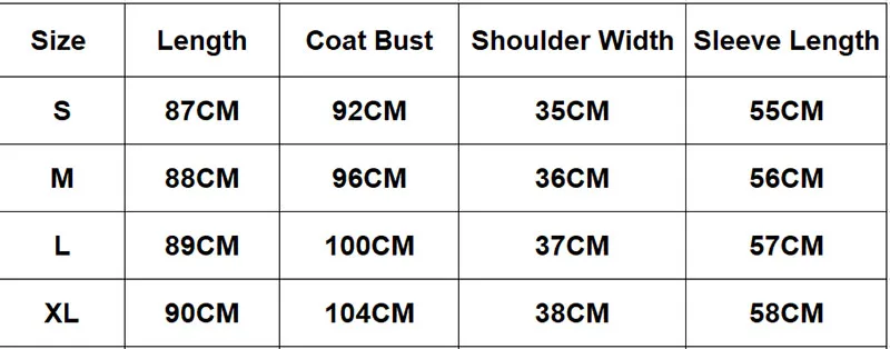 Таблица размеров
