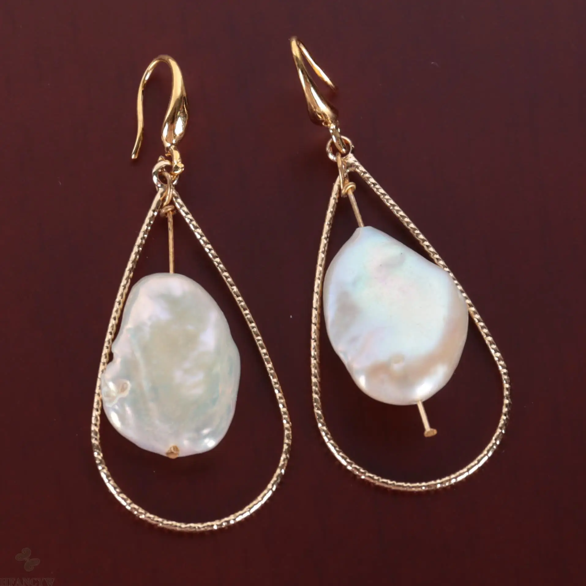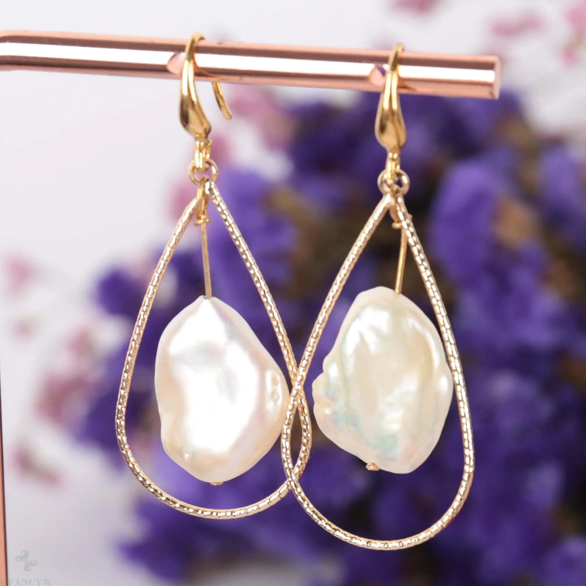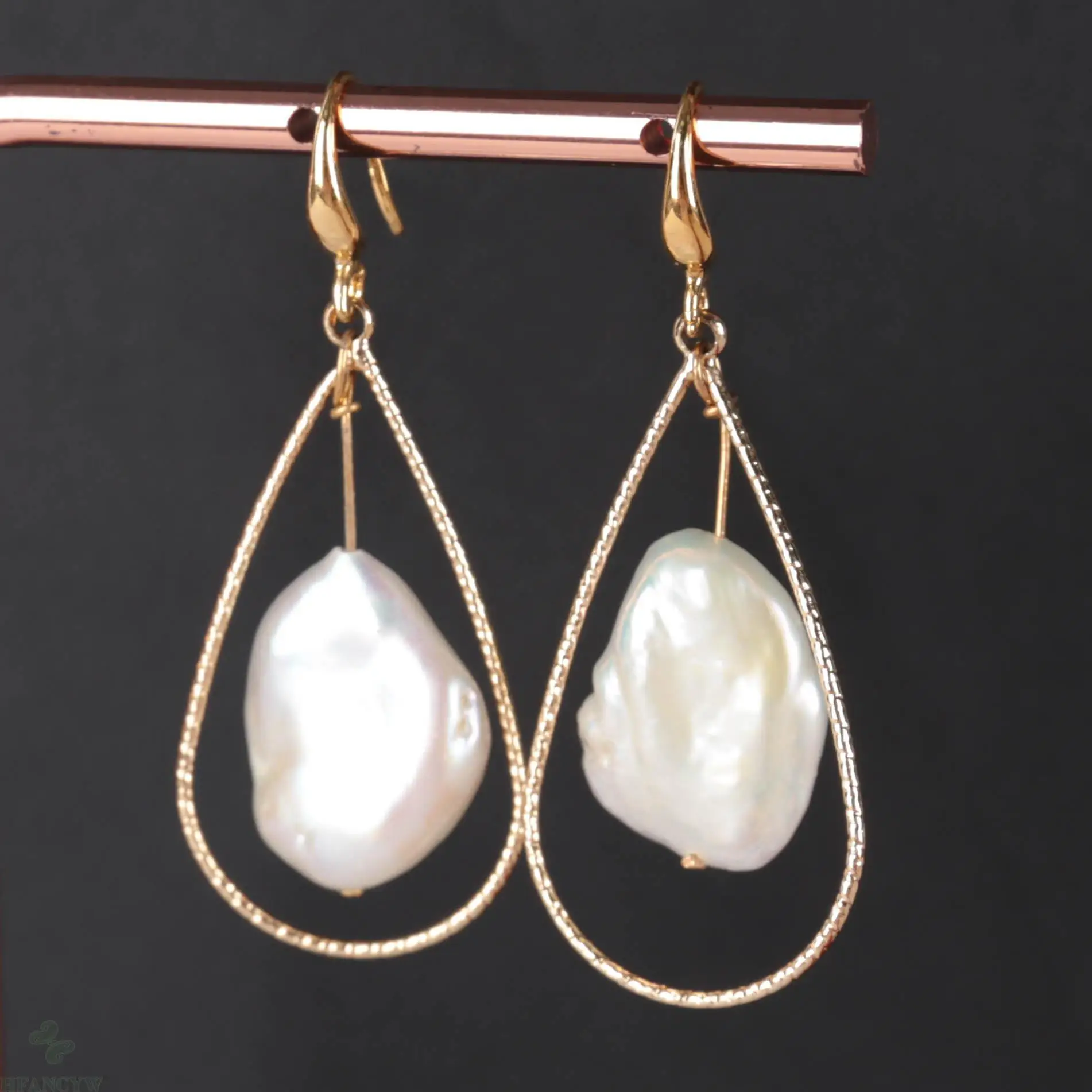 10x20 мм естественный белый барокко жемчужные серьги 18k Висячие Крючки