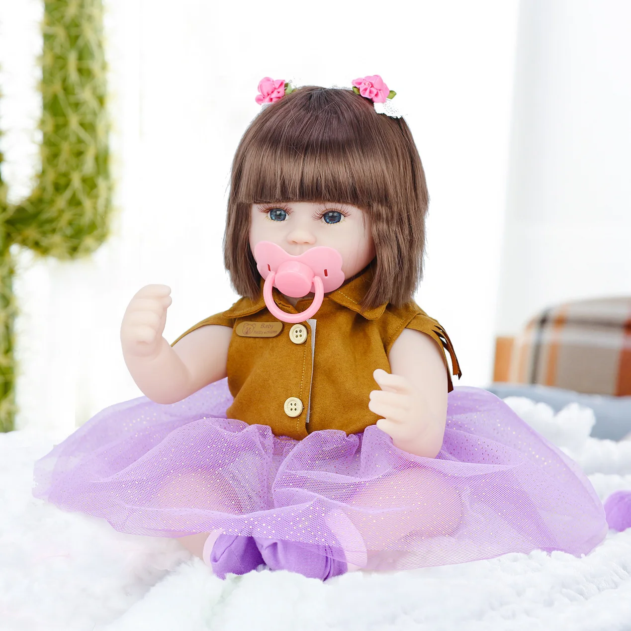 Информация о продукте: Безопасность: продукт прошел мониторинг EN71, соответствует импорту ЕС, и качество гарантировано 1. Тип товара: кукла 2, Пол: унисекс 3. Наполнитель: хлопок 4. Размер: около 42 см 5, Вес: около 0,8 кг 6. Структура: голова и конечности изготовлены из импортной экологически чистой резины, тело из хлопка, очень мягкое; Конечности куклы могут двигаться, могут сидеть и лежать; Не будут стоять, не могу говорить; Тканевая кукла не может проникнуть в воду 7. Включает: Цвет включает: 1 куклу; 1 комплект одежды и как показано на картинке. 8. Одежда: Принесите комплект одежды, как показано. Если вам нужно переодеться, рекомендуется приобрести настоящую детскую одежду размеров 0-3 месяца Из-за ручного измерения допускается погрешность в 1-3 см.