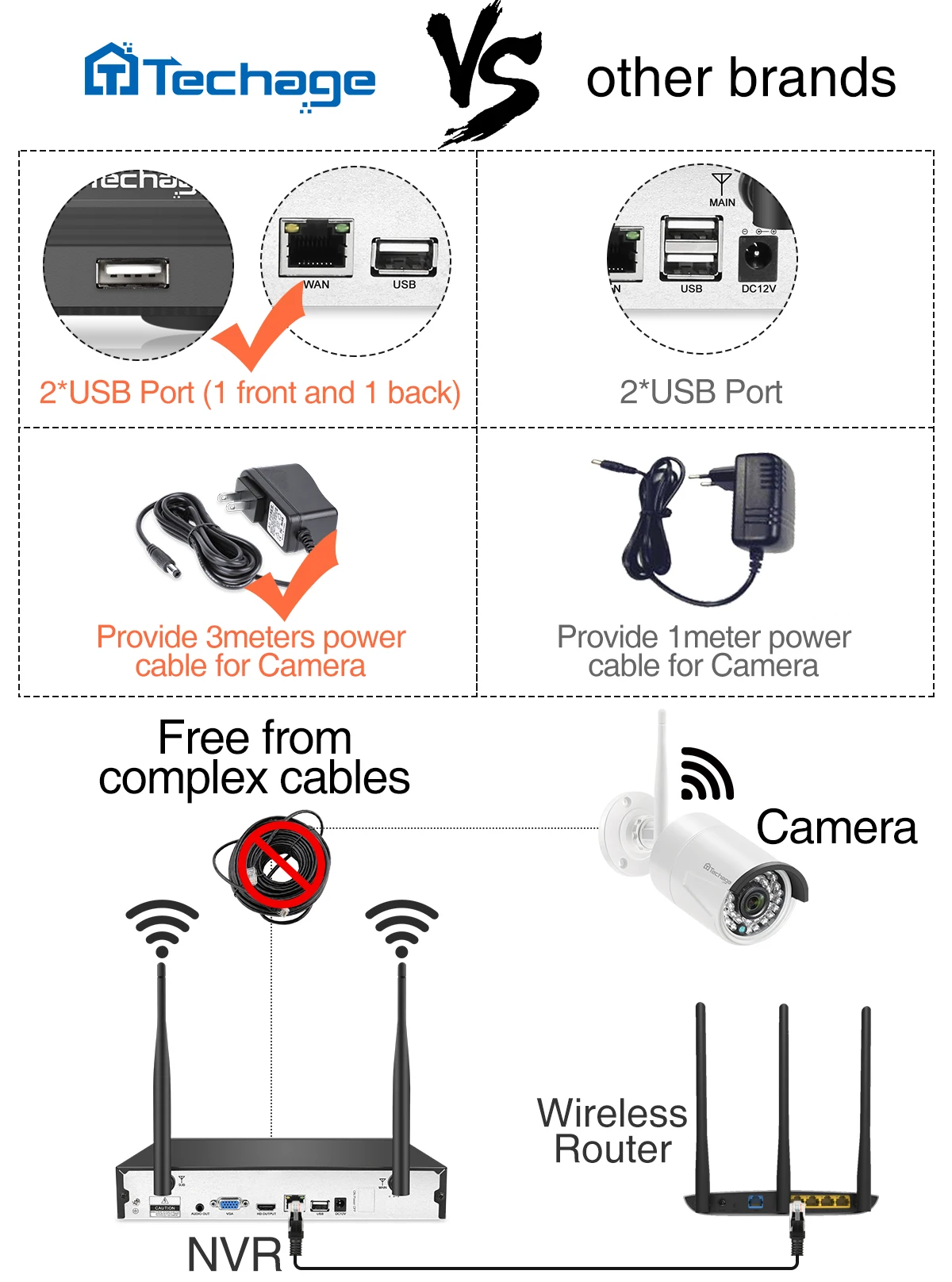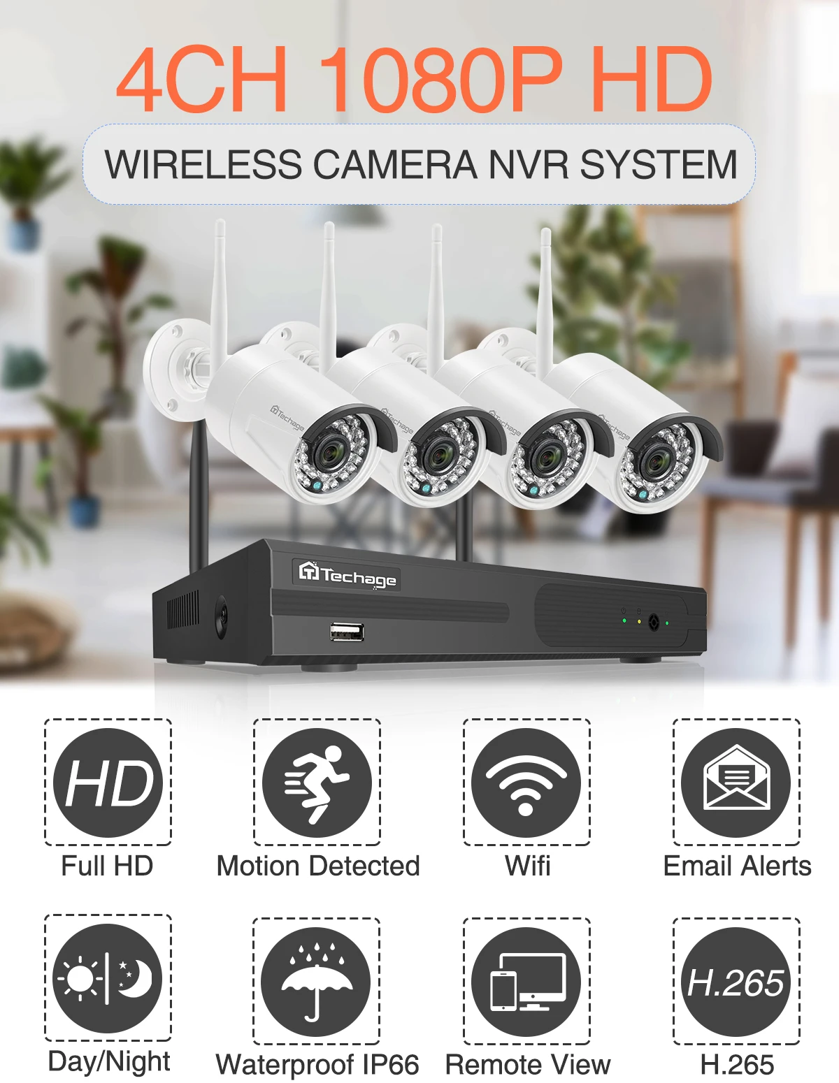 1. Разрешение HD 1080P; Не поддерживает Onvif! 2. Камеры оснащены встроенным микрофоном и звуковой записью; Воспроизведение видео с жесткого диска с помощью звуков; Прослушивайте звуки из приложения. Сетевой видеорегистратор на 3,4 каналов, поддерживает до 4 камер; Сетевой видеорегистратор с выходом auido может подключаться к гарнитуре и динамику с аудио. 4. Беспроводное подключение по Wi-Fi / Lan кабелю между сетевым видеорегистратором и камерами; 5. Металлический корпус водонепроницаемый IP-камера используется для крытый/на открытом воздухе; 6. Подключи и работай, удаленный просмотр с помощью системы Android и iOS (смартфон, планшет, планшет, ПК); 7. Адаптер 3 метра в длину для каждой камеры; 8. ИК-подсветка ночного видения: ночное видение до 10-30 м; 9. Обнаружение движения + оповещение по электронной почте + Push-уведомления приложения 10. Сетевой видеорегистратор обновлен до кода H.265 + encode: Сэкономьте место на жестком диске; 11. Поддержка нескольких языков: английский, русский, французский, испанский и т. д.;