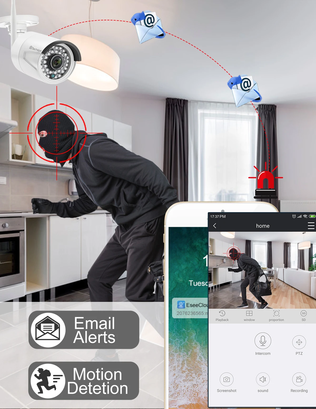 Функция записи при обнаружении движения: при обнаружении движения NVR сохранит отснятый материал на жестком диске, не пропустив ни одного важного события. Можно даже избежать ложных срабатываний, установив «маску» для обнаружения движения для блокировки участков с постоянным движением. Оповещения по электронной почте NVR автоматически отправит вам электронное письмо, если будет обнаружено какое-либо движение.