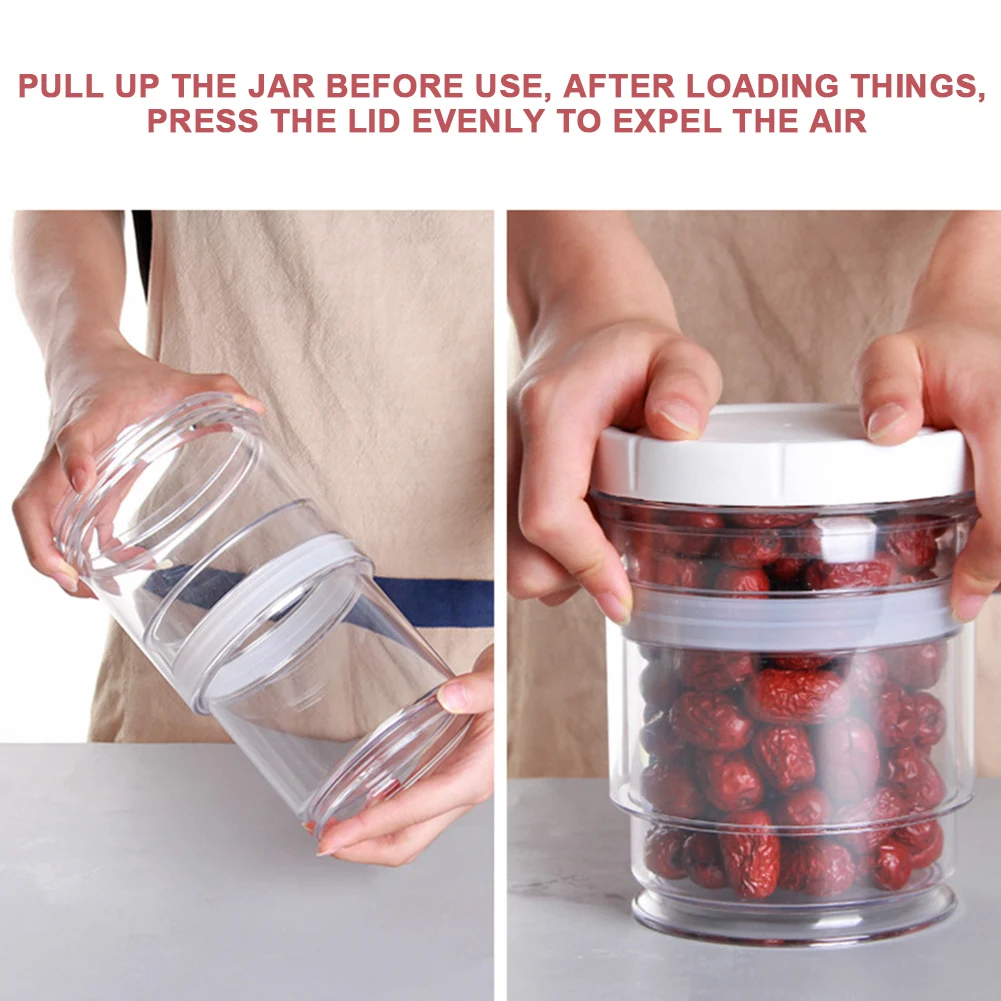 4. Вытяните банку перед использованием, после загрузки вещей, равномерно нажмите крышку, чтобы выгнать воздух.