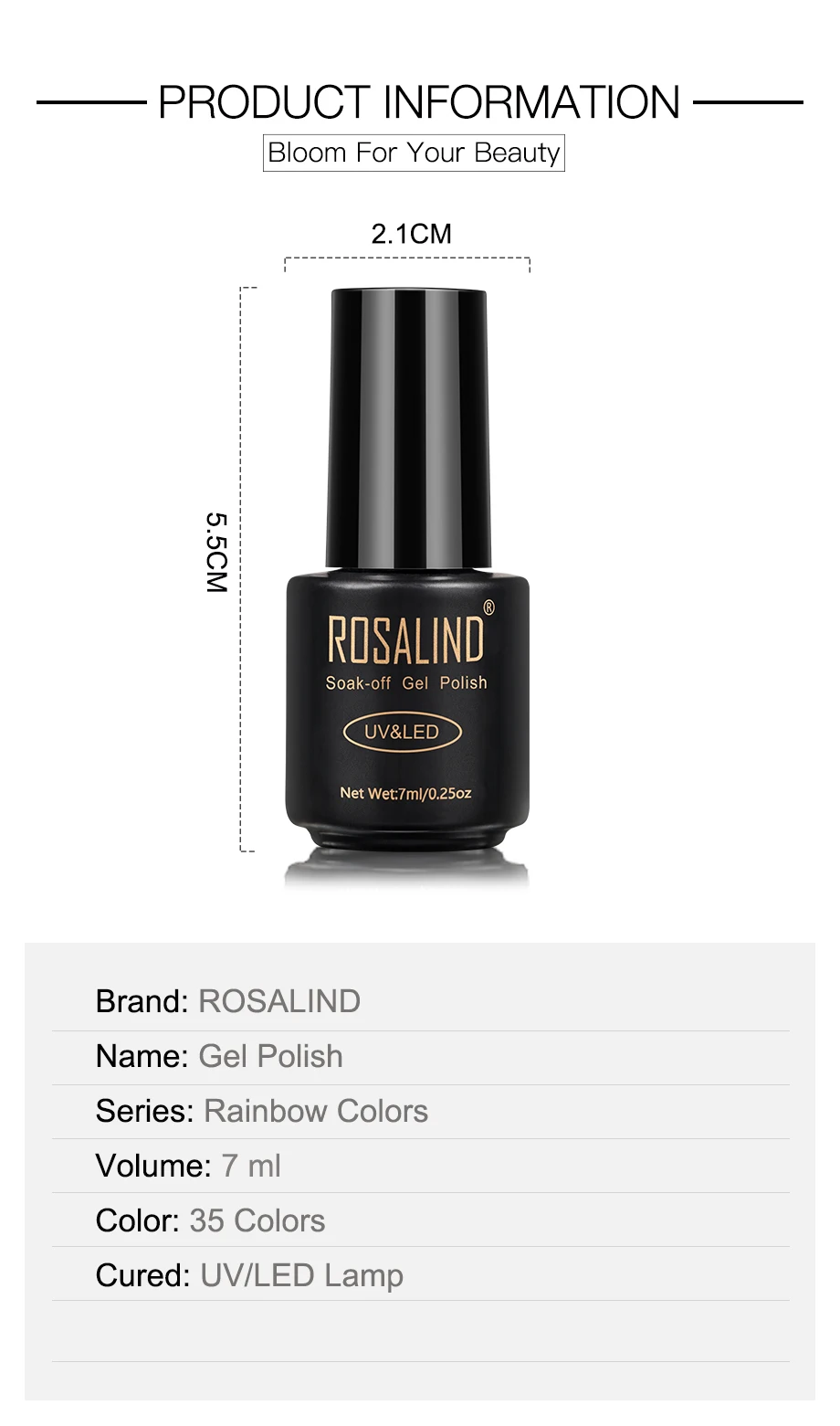Характеристики Товара: Бренд: Розалинд Название: Гель-лак Серия: Радуга Цвета Объем: 7 мл Цвет: 35 цветов s Излеченная: УФ/Светодиодная лампа -Качество-наш первый приоритет. -Светильник, почти без запаха (только верхнее покрытие и основа имеют умеренный запах), мы применяем только органическую текстуру для защиты вашего здоровья. -Цвет будет сиять до 30 дней. -Цвета на выбор, подходят для всех случаев. Шаг за шагом: 1. Форма ногтя. Слегка смочите поверхность ногтевой пластины. Продезинфицируйте. -2. Нанесите базовый слой основы от кутикулы до свободного края (не забудьте запечатать край ногтя). Высушите ногти под светодиодный светильник в течение 10 секунд или УФ-светильник в течение 2 минут. -3. Нанесите тонкое пальто отмачиваемого геля на выбор. Кепки со свободными краями. Лечение: 30 секунд в светодиодный светильник, или 2 минуты в УФ-лампе. -4. Повторите 2-е тонкое покрытие отмачиваемого гель-лака на ногти. Высушите под светодиодный лампой в течение 30 секунд или УФ-светильник в течение 2 минут. -5. Нанесите верхнее пальто. Кепки со свободными краями. Лечение: 30 секунд в светодиодный светильник. -6. Удалите липкий остаток на ногтях с помощью очищающего средства. Затем нанесите питающее масло кутикулы для увлажнения влаги в кутикулу и кожу вокруг ногтя. Для того, чтобы удалить: 1. Отмачивайте ногти в акриловом удалителе в течение 5 минут. -2. Аккуратно Наденьте на каждый ноготь всю эмаль для ногтей. Внимание: 1. Объем-7 мл. Поскольку емкость бутылки составляет более 7 мл, гель для ногтей не будет полностью заполнен бутылкой! 2. Плотно закрываются. Держите подальше от солнечного света. Хранить в недоступном для детей месте.