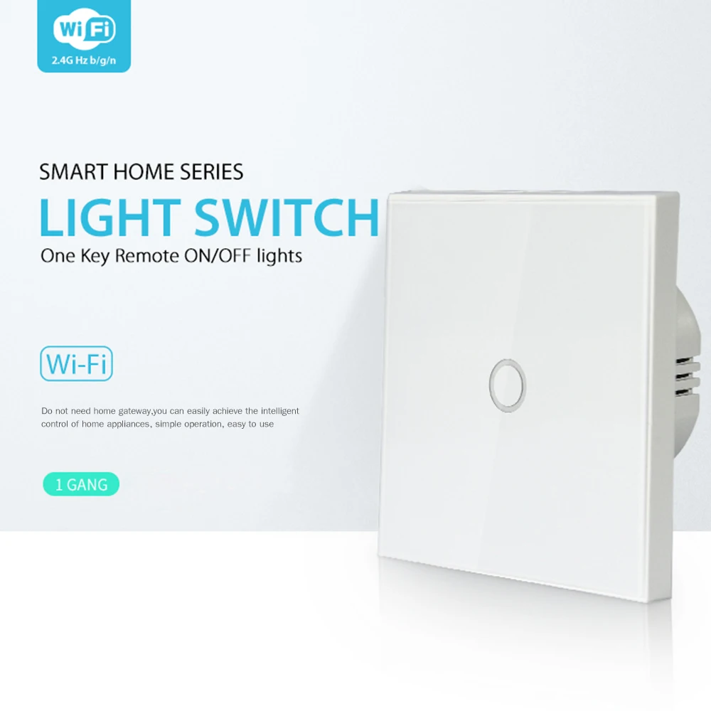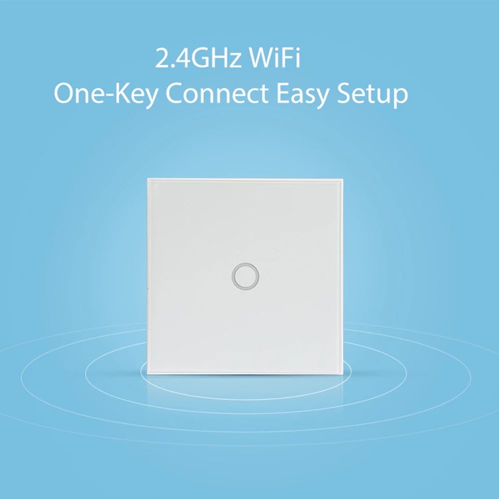 Интеллектуальная беспроводная (Wi-Fi) 1 Gang светильник переключатель, характеристики 2,4 ГГц Wi-Fi с помощью одной кнопки подключения, прост в установке, не нужен домашний шлюз, вы можете легко достичь интеллигентая (ый) управления бытовой техникой.