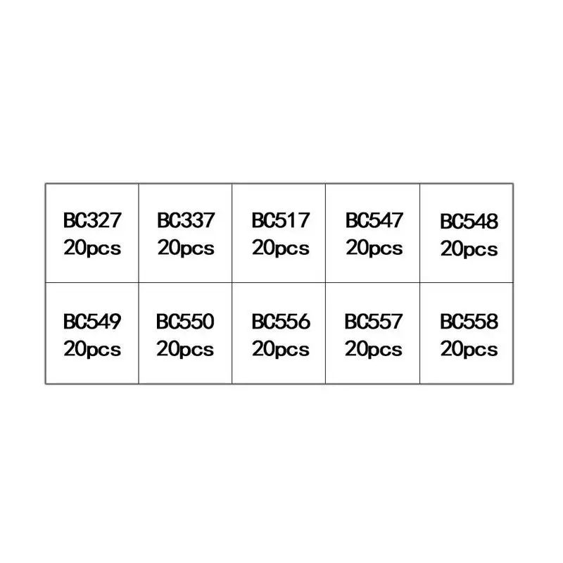 BC327PNP, BC337NPN, BC517NPN, BC547NPN, BC548NPN, BC549NPN, BC550NPN, BC556PNP,