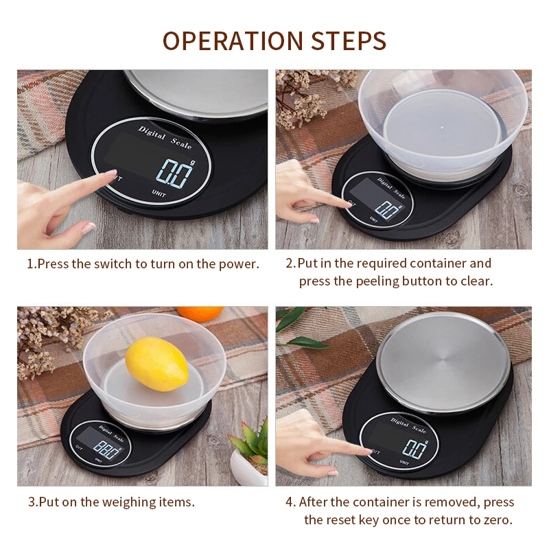 -Функция тары: кухонные весы могут измерять вес нетто изделий с функцией тары, так что вы можете легко весить вещи.