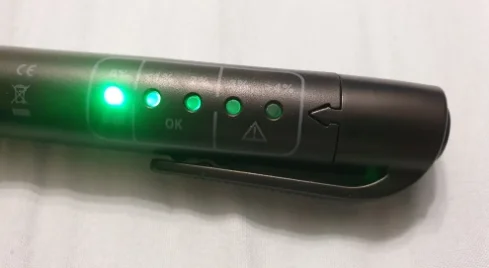 4. Insérez le testeur dans le réservoir подвеска une seconde, puis les résultats seront indiqués коррекция par des led.