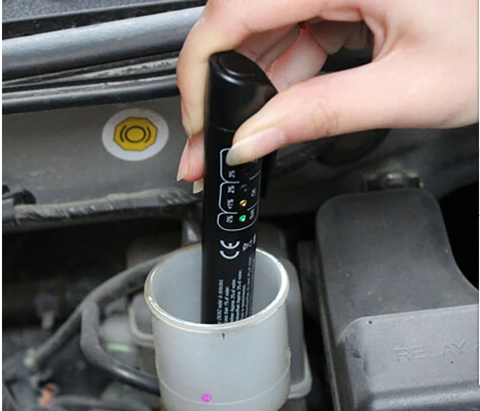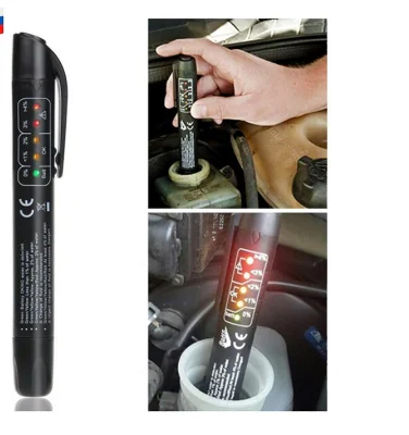 Le stylo de détection du liquide de frein est basé sur le changement de conductivité pour déterminer le liqude de frein à changement d'humidité. Il montre clairement l'étendue de l'humidité contenue par la diode électroluminescente, une teneur élevée en humidité conduira à un point d'ébullition inférieur, ates les perfectance freinance. Le rouge indique que le liquide de frein doit être rempacé immédiatement, le vert représente un bon état, le jaune indique que l'état est приемлемый mais rapidement rempacé.
