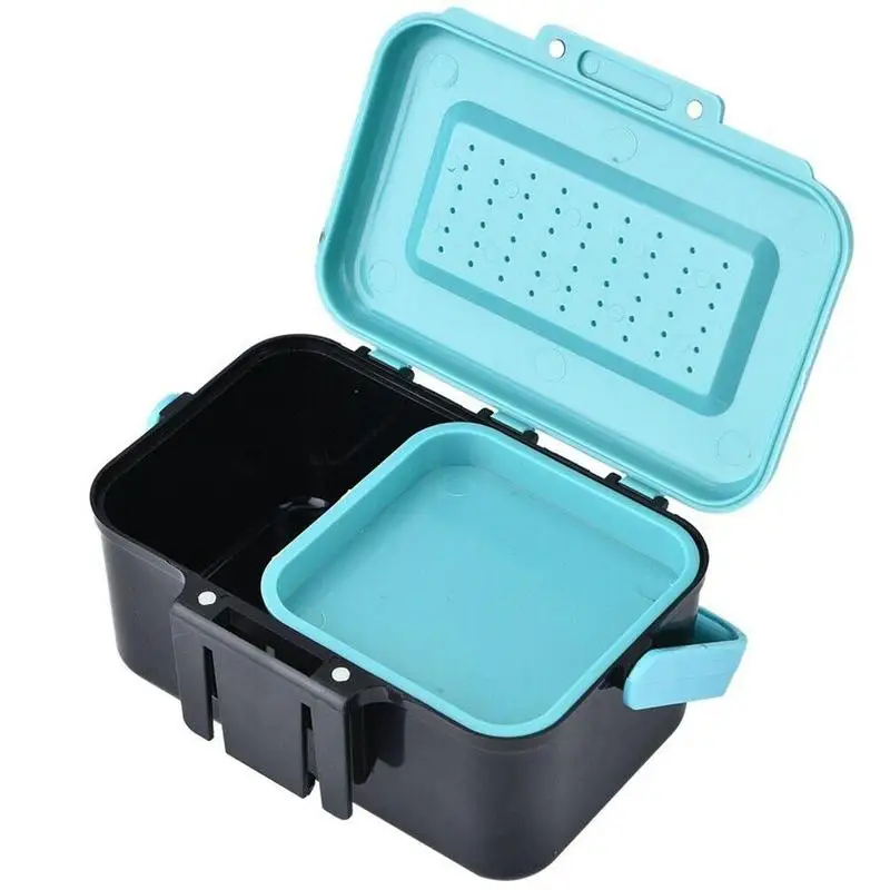 Крышка с вентиляционными отверстиями позволяет воздуху течь и увеличить время выживания живой приманки.