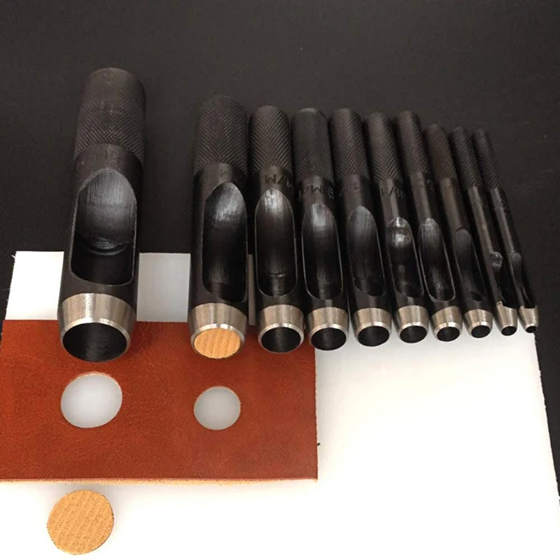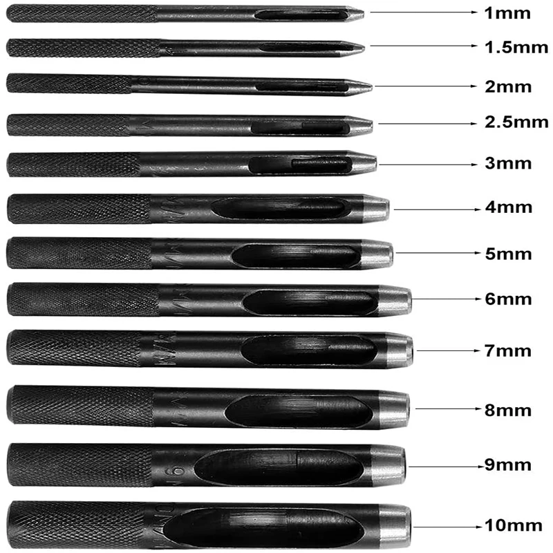 3. Набор стальных перфораторов изготовлен из прочной, термообработанной углеродистой стали для долговечных режущих кромок.