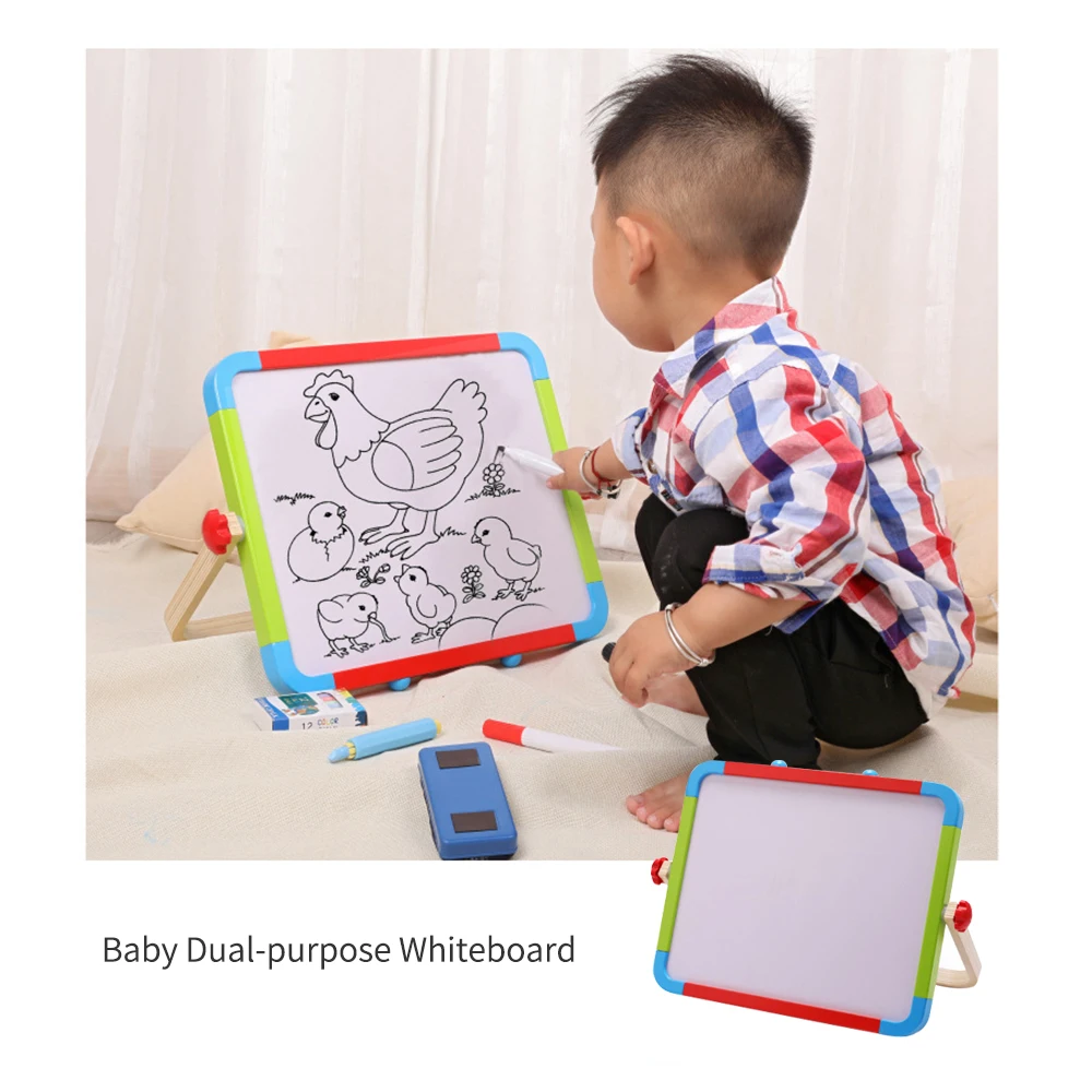 【 Двусторонний дизайн:Двухсторонний мольберт, белая доска с одной стороны, черная доска с другой, дети могут рисовать на доске мелом и рисовать на доске для сухой стирания с белой доской. Белая доска магнитная.