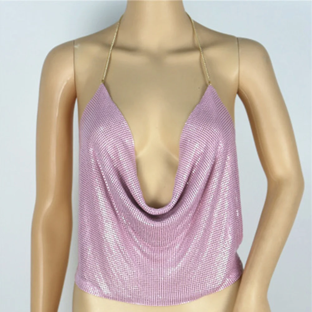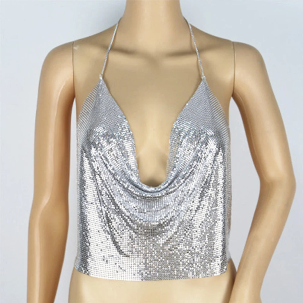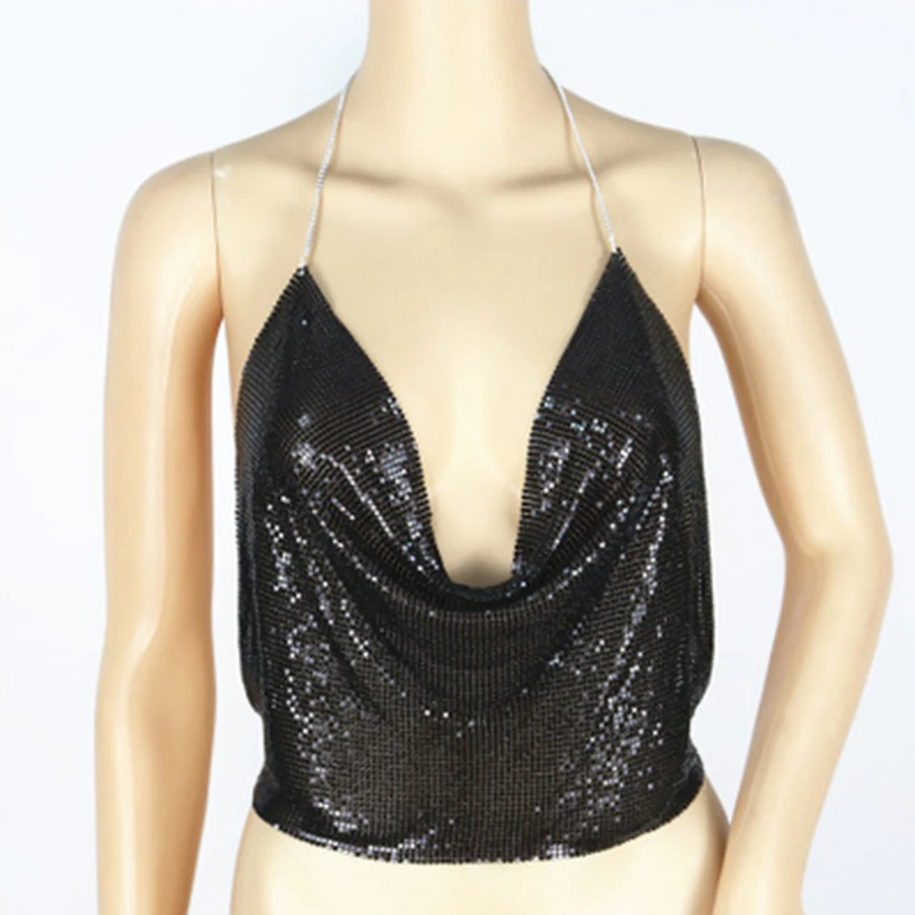 Особенности: Блестящие Блестки, глубокий v-образный вырез, дизайн с лямкой на шее