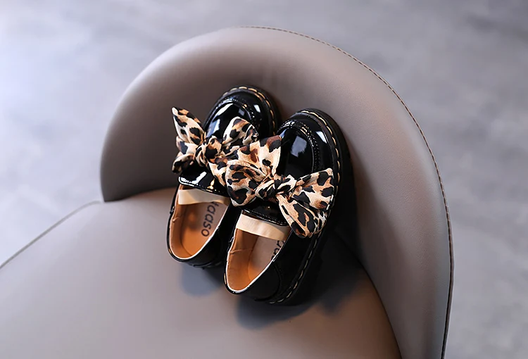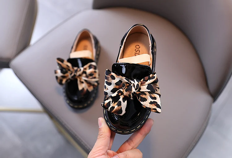 Материал: из искусственной кожи + Леопардовый бант-бабочка + резиновая подошва