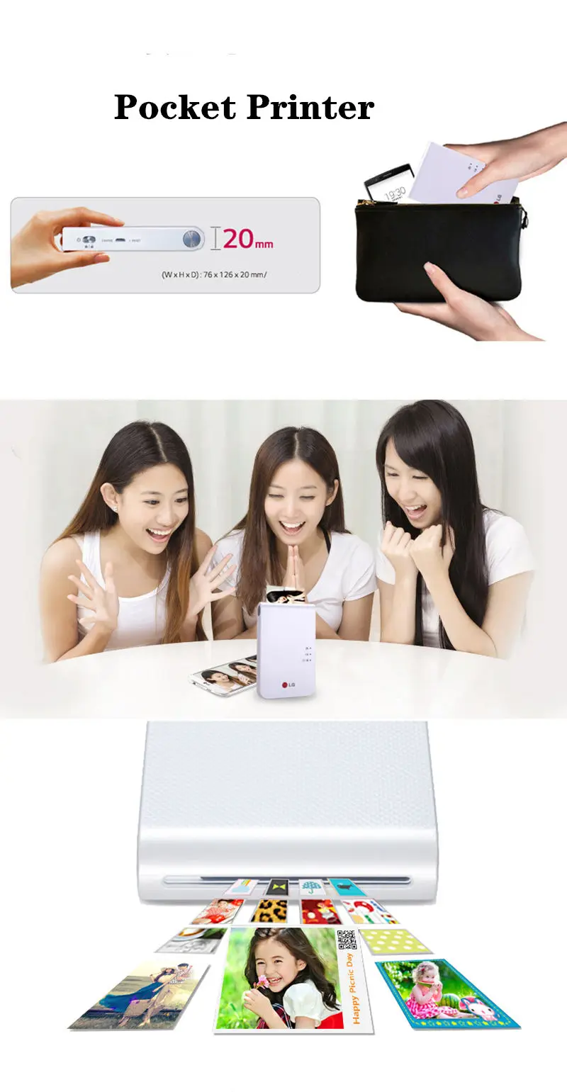 Домашний цветной фотопринтер Мини Портативный Карманный фотопринтер без чернильной печати подключение по Bluetooth